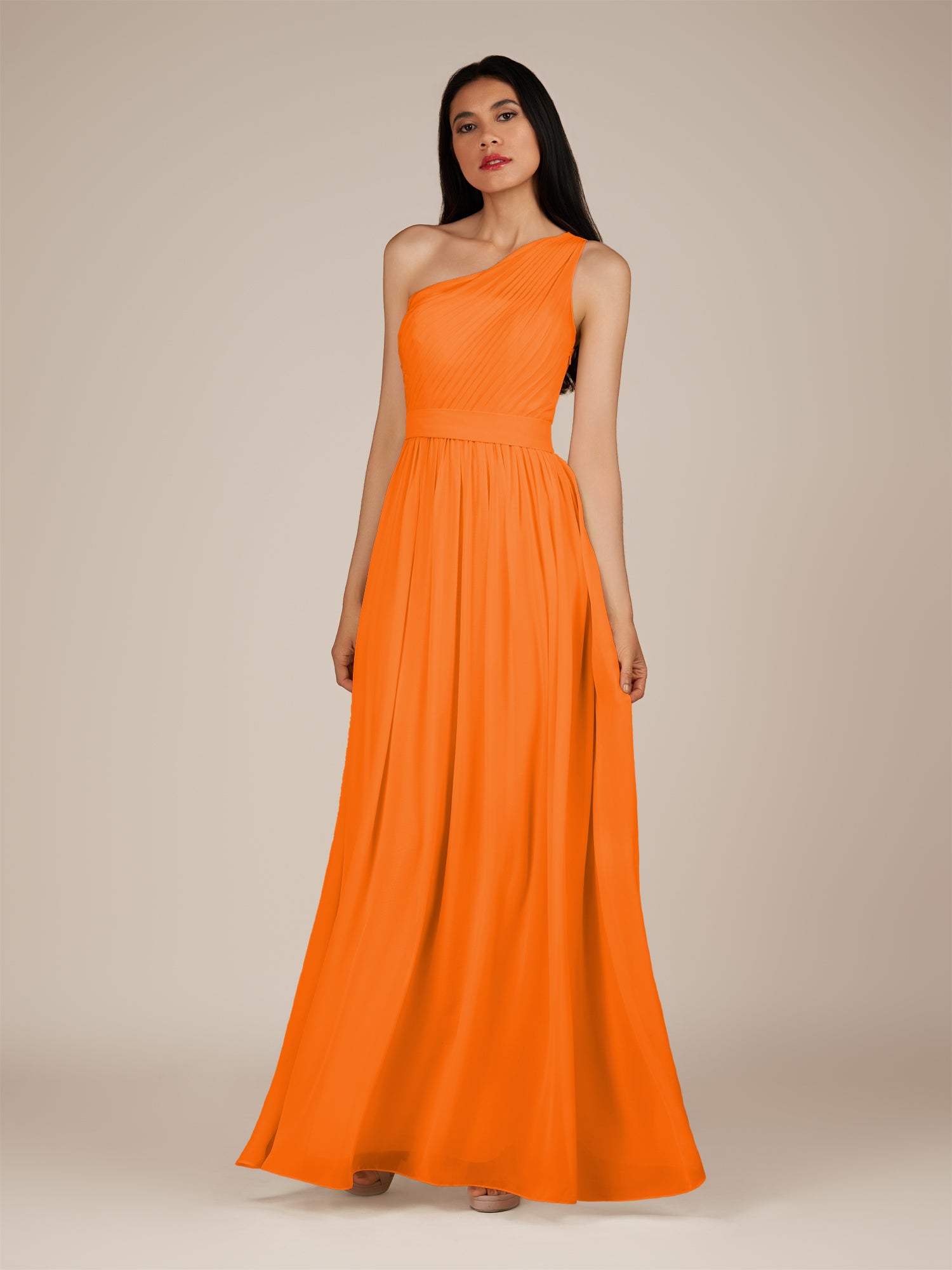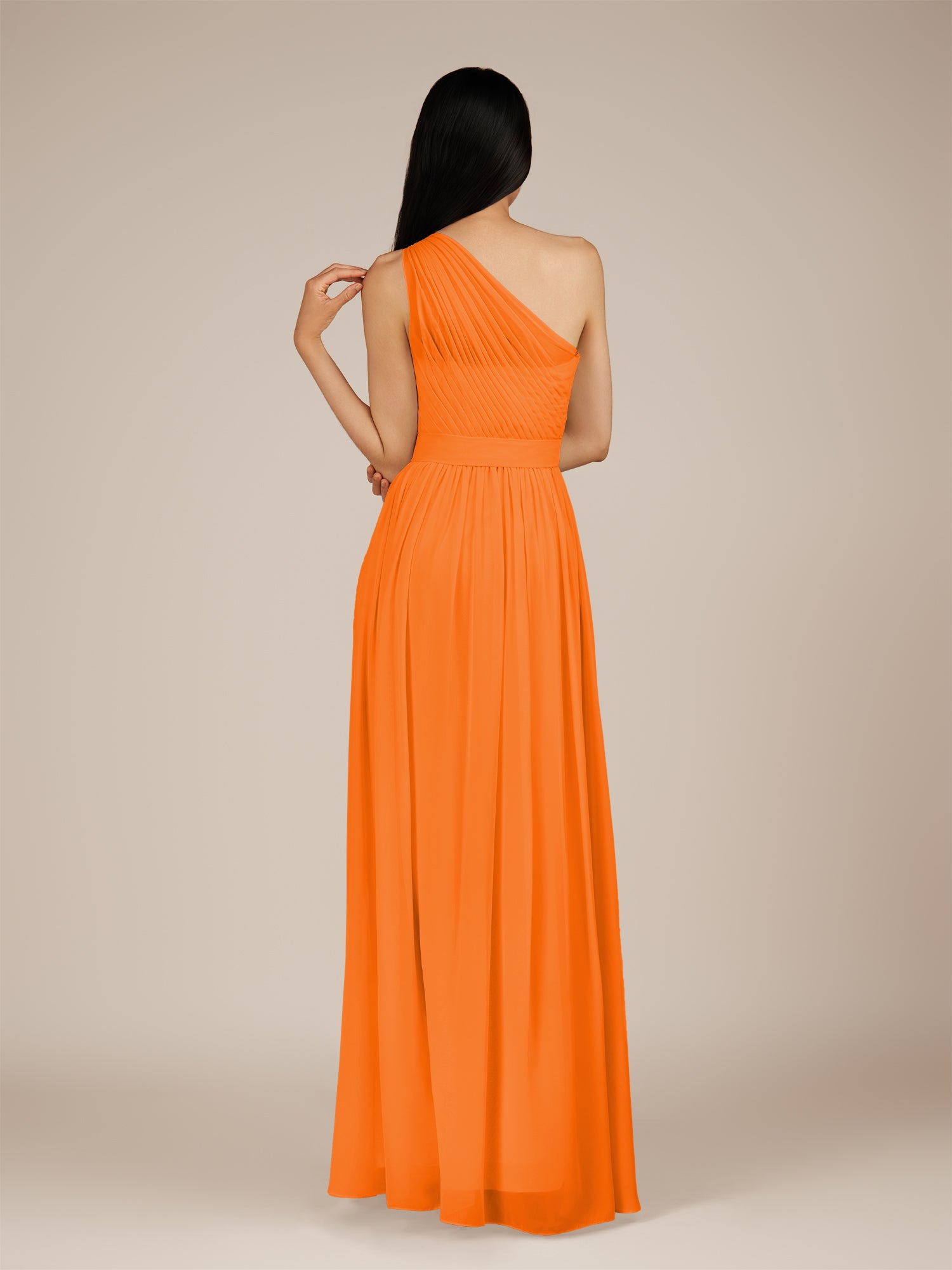 Juliet is a romantic and elegant choice for your bridal party. Crafted from soft chiffon, she features a flattering one-shoulder neckline and a delicately pleated bodice that enhances the waist. Her floor-length A-line skirt flows gracefully with every step, creating a timeless and feminine silhouette. Finished with a smooth zipper back, Juliet blends classic charm with effortless style, perfect for weddings and special occasions.