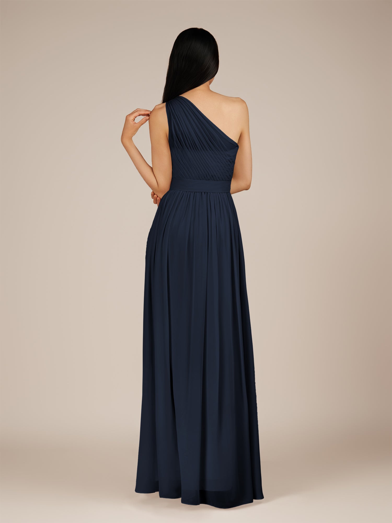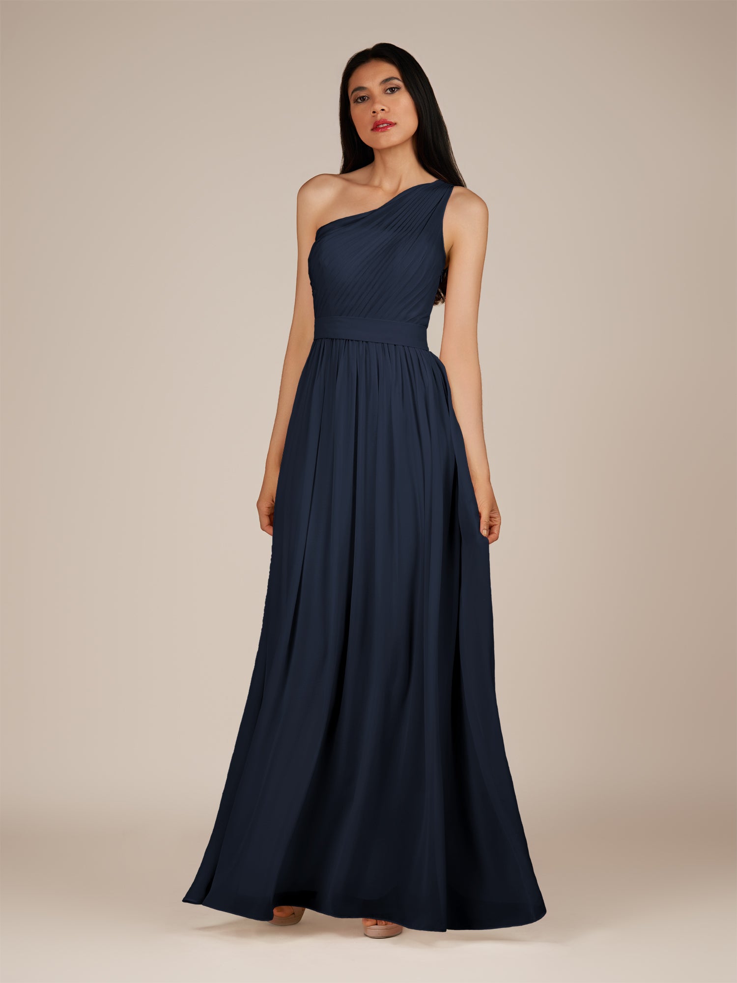 Juliet | Dark Navy - A Line Chiffon One Shoulder Pleated Long Bridesmaid Dress