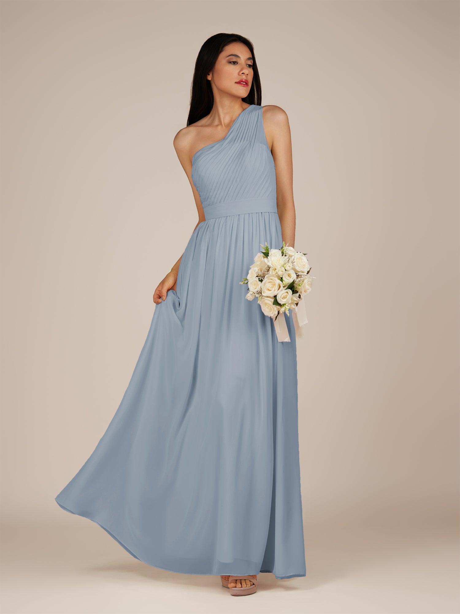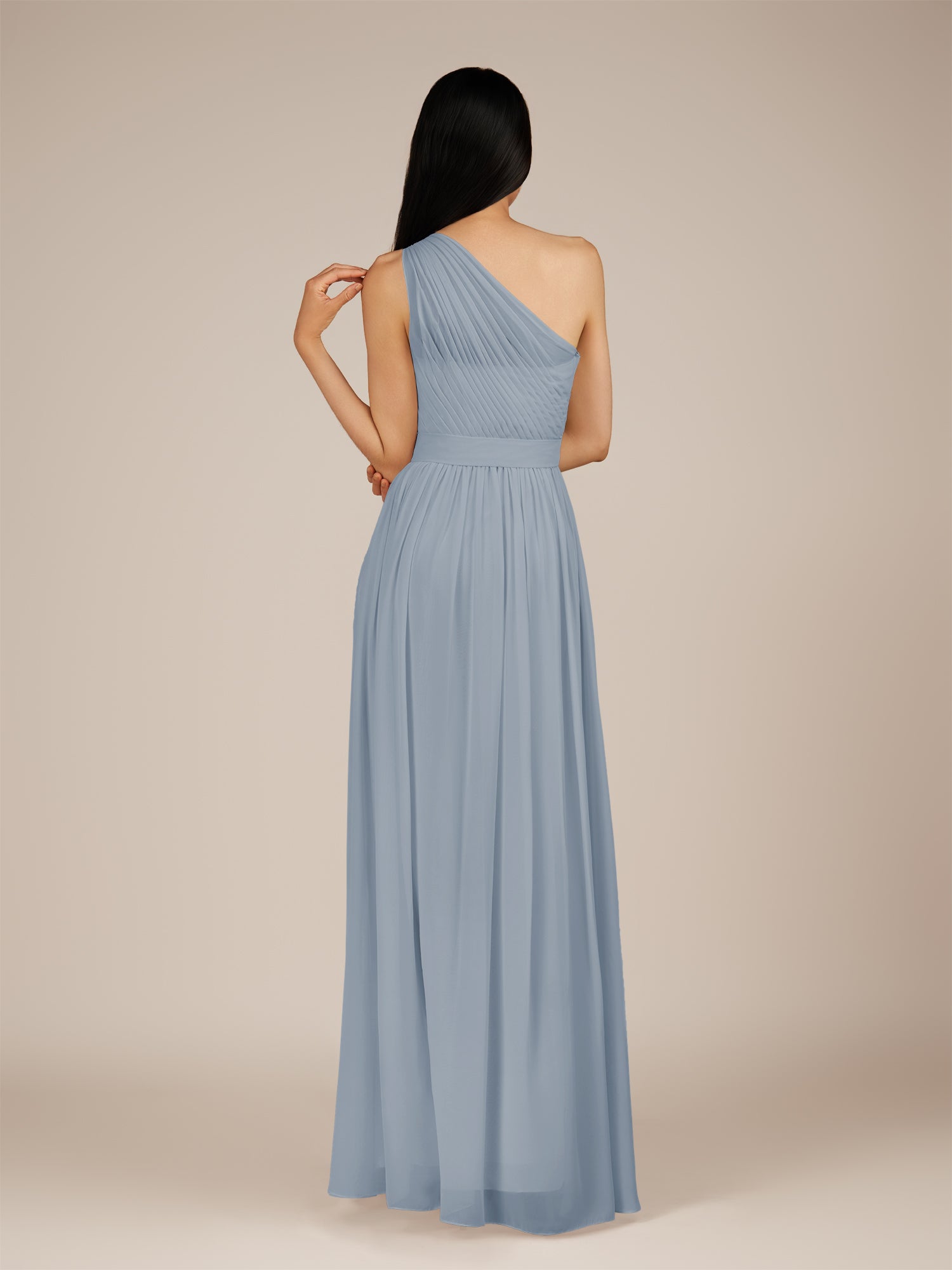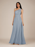 Juliet | Dusty Blue - A Line Chiffon One Shoulder Pleated Long Bridesmaid Dress