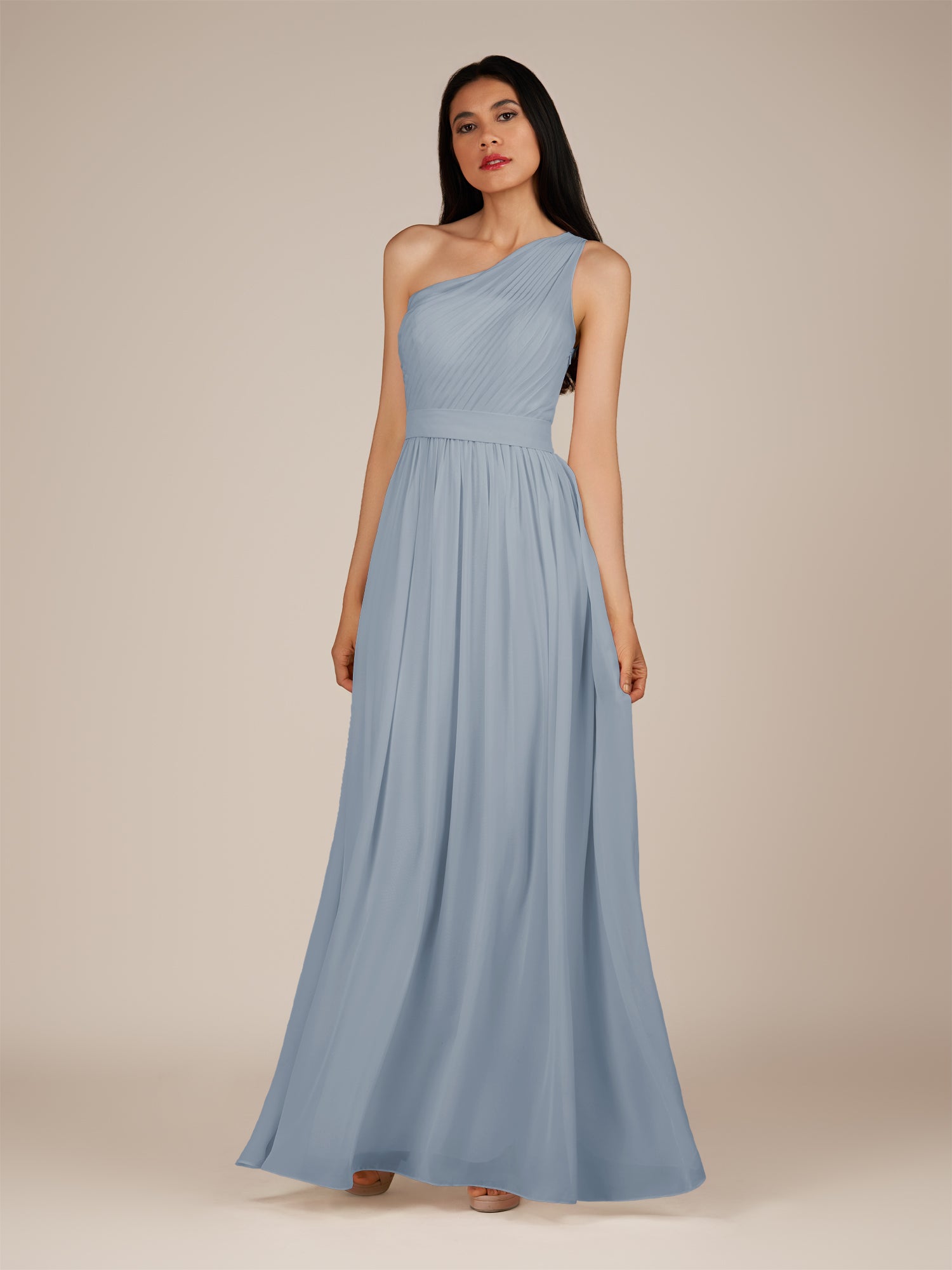 Juliet is a romantic and elegant choice for your bridal party. Crafted from soft chiffon, she features a flattering one-shoulder neckline and a delicately pleated bodice that enhances the waist. Her floor-length A-line skirt flows gracefully with every step, creating a timeless and feminine silhouette. Finished with a smooth zipper back, Juliet blends classic charm with effortless style, perfect for weddings and special occasions.
