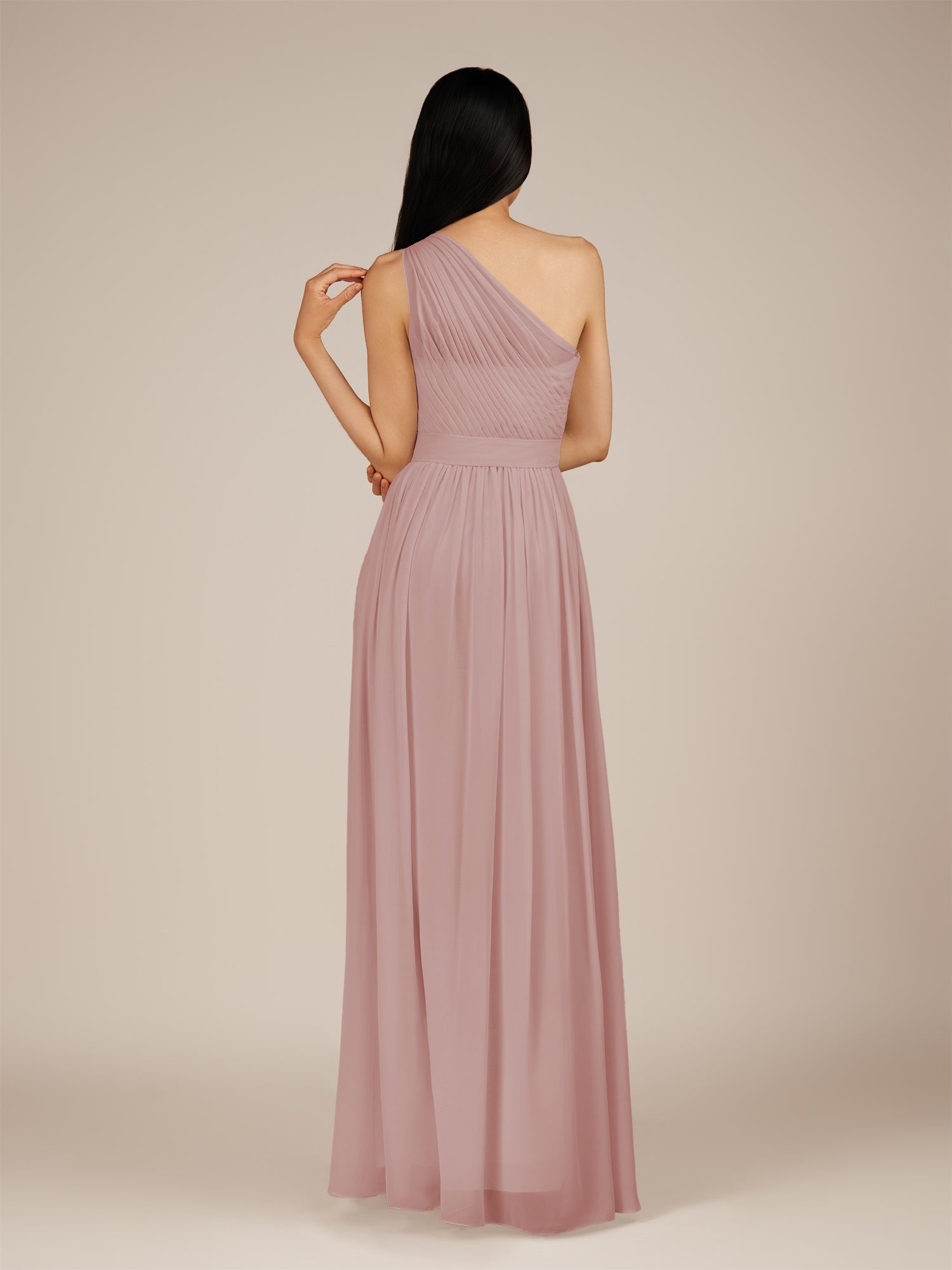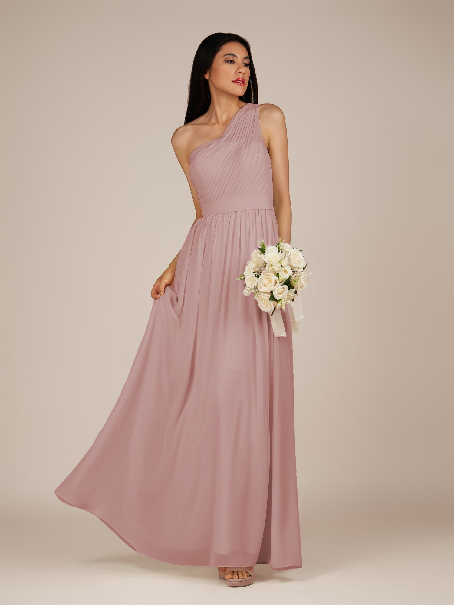 Juliet | Dusty Rose - A Line Chiffon One Shoulder Pleated Long Bridesmaid Dress