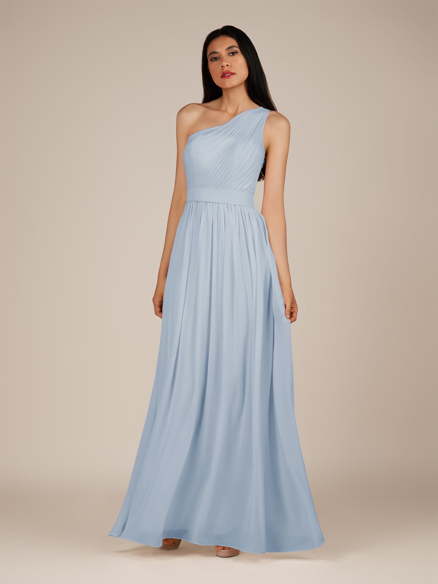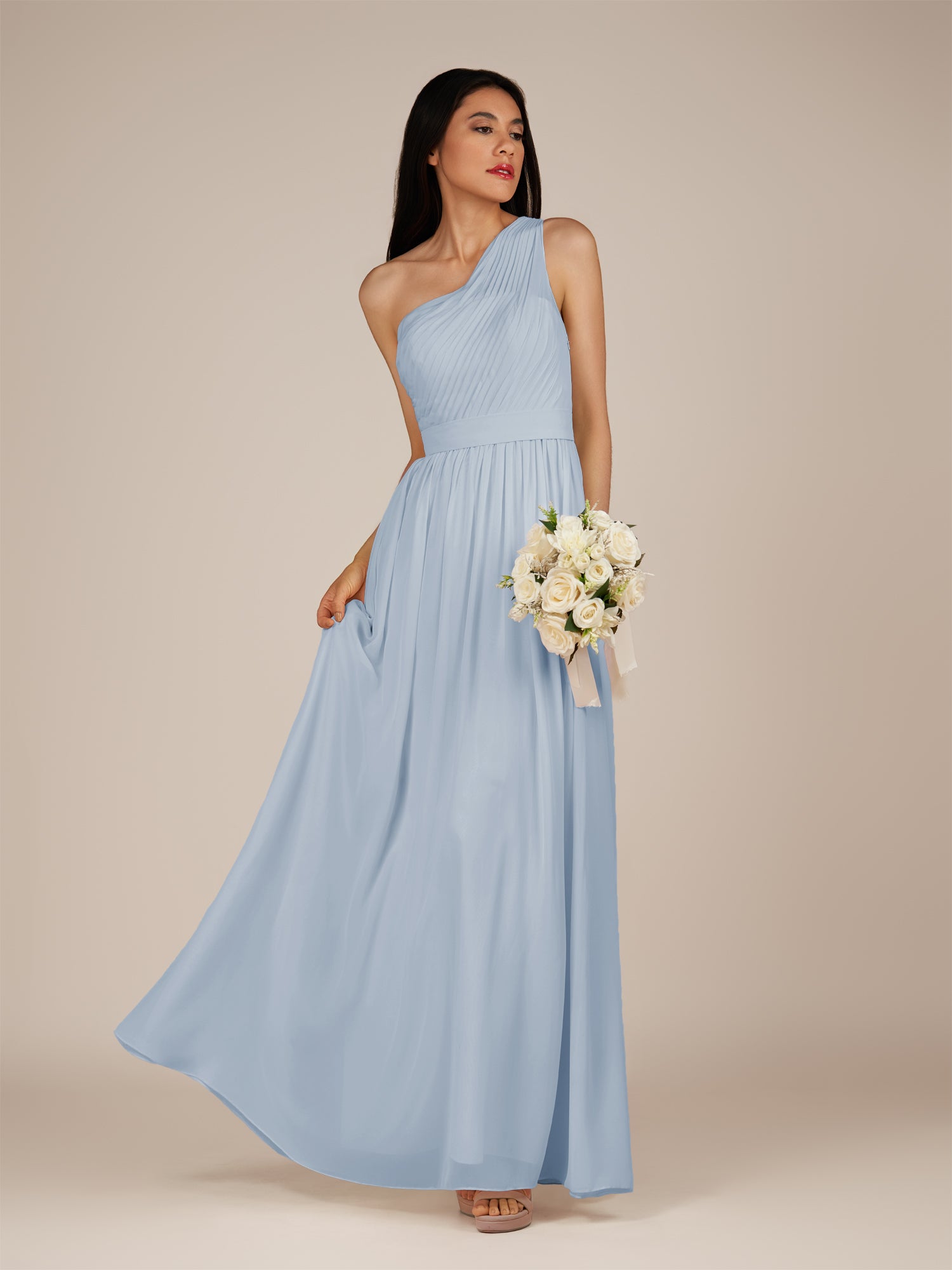 Juliet | Ice - A Line Chiffon One Shoulder Pleated Long Bridesmaid Dress
