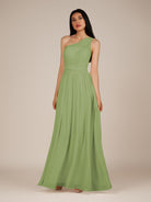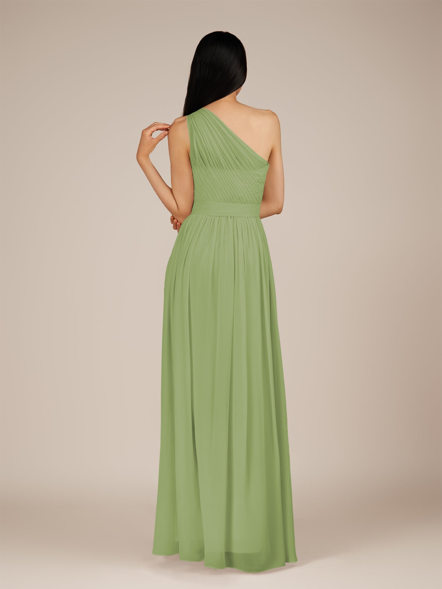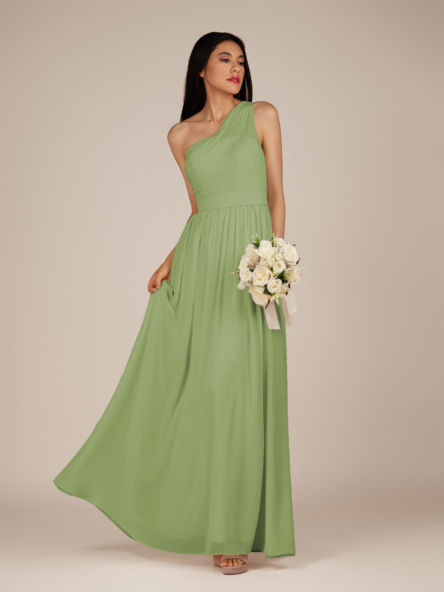Juliet | Matcha - A Line Chiffon One Shoulder Pleated Long Bridesmaid Dress