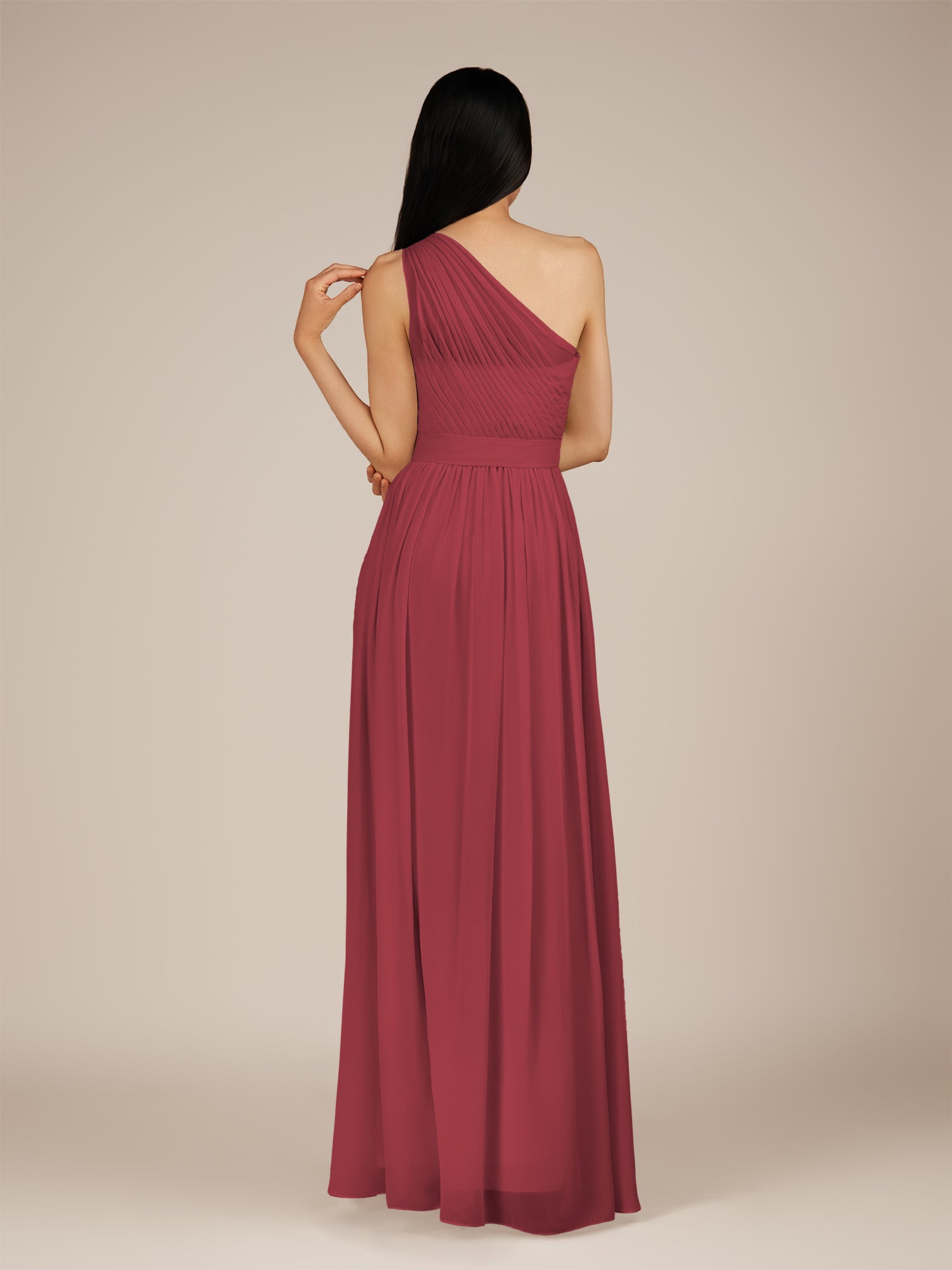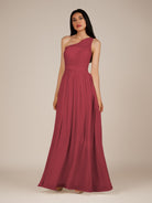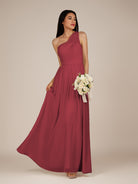 Juliet is a romantic and elegant choice for your bridal party. Crafted from soft chiffon, she features a flattering one-shoulder neckline and a delicately pleated bodice that enhances the waist. Her floor-length A-line skirt flows gracefully with every step, creating a timeless and feminine silhouette. Finished with a smooth zipper back, Juliet blends classic charm with effortless style, perfect for weddings and special occasions.