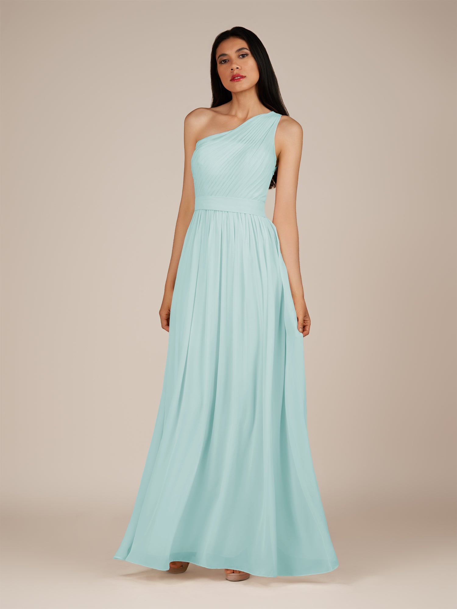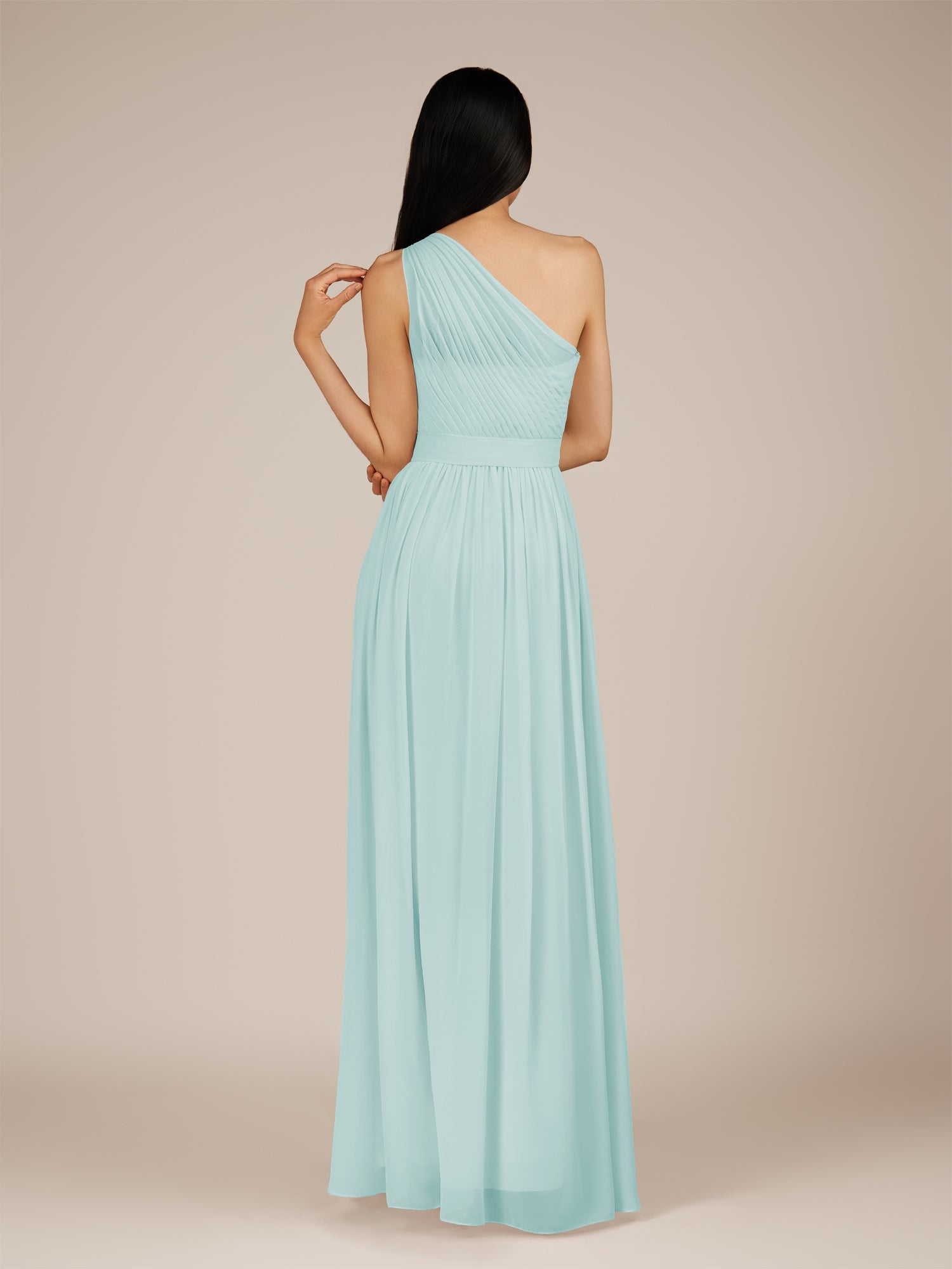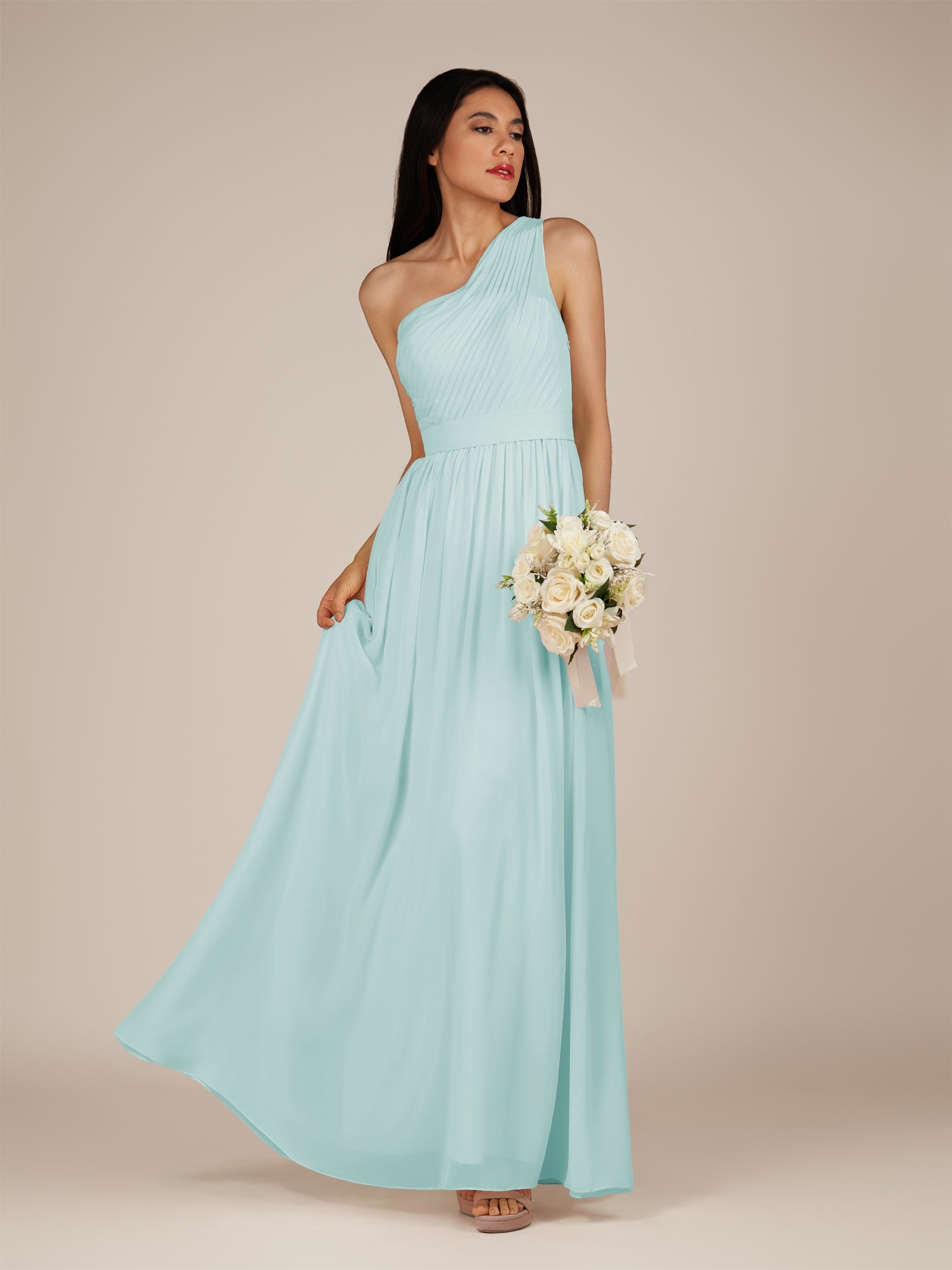Juliet | Mist - A Line Chiffon One Shoulder Pleated Long Bridesmaid Dress