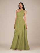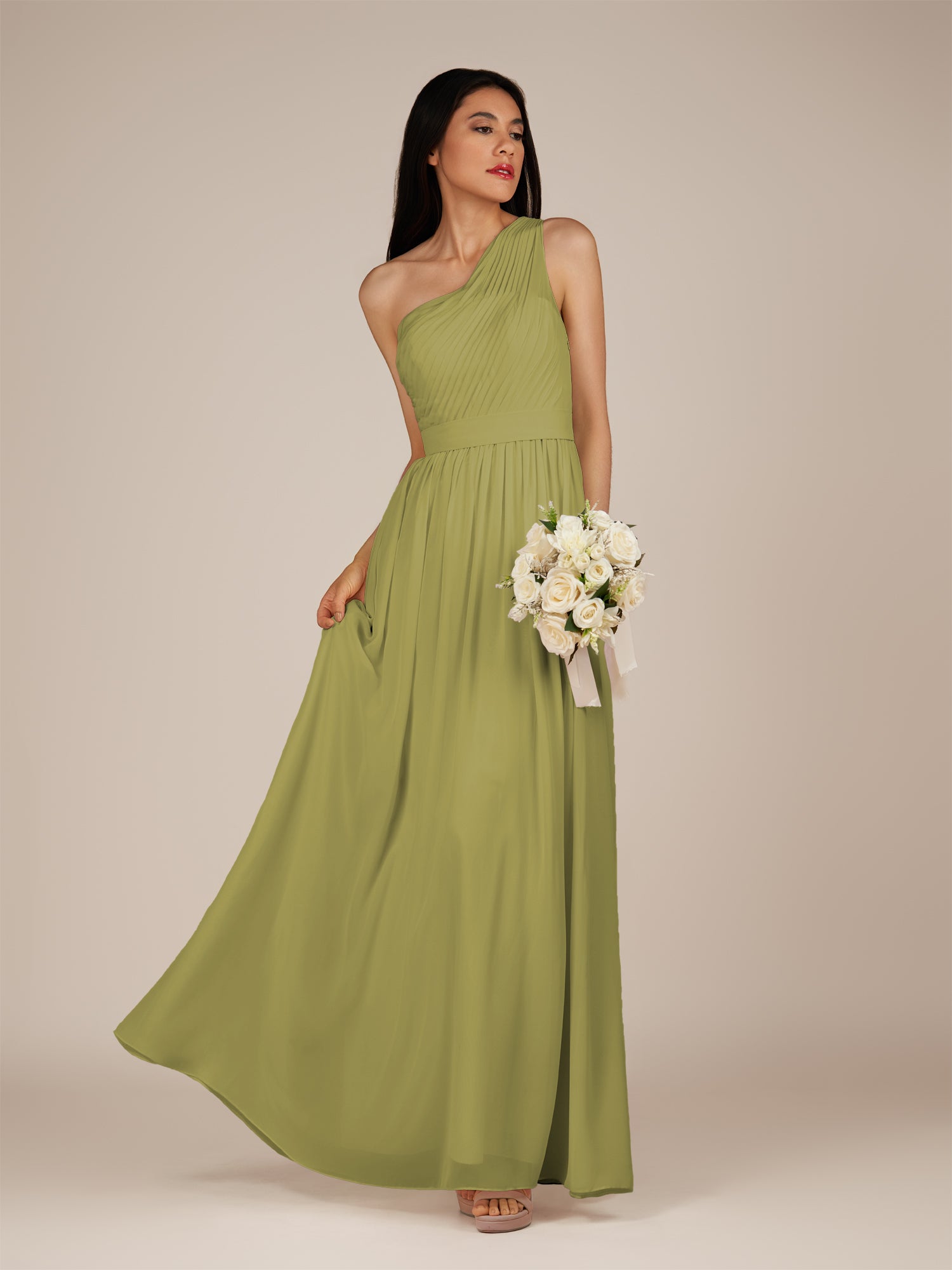 Juliet | Moss Green - A Line Chiffon One Shoulder Pleated Long Bridesmaid Dress