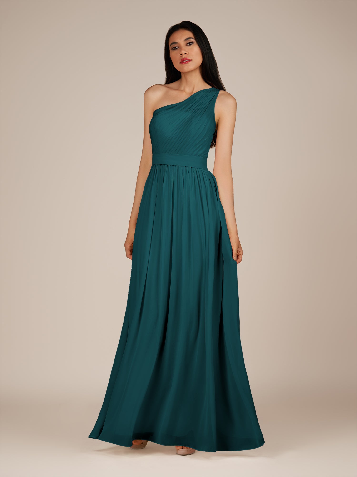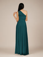 Juliet | Pine - A Line Chiffon One Shoulder Pleated Long Bridesmaid Dress