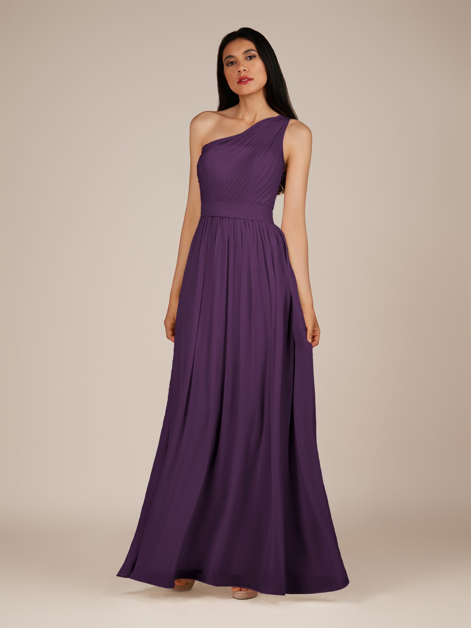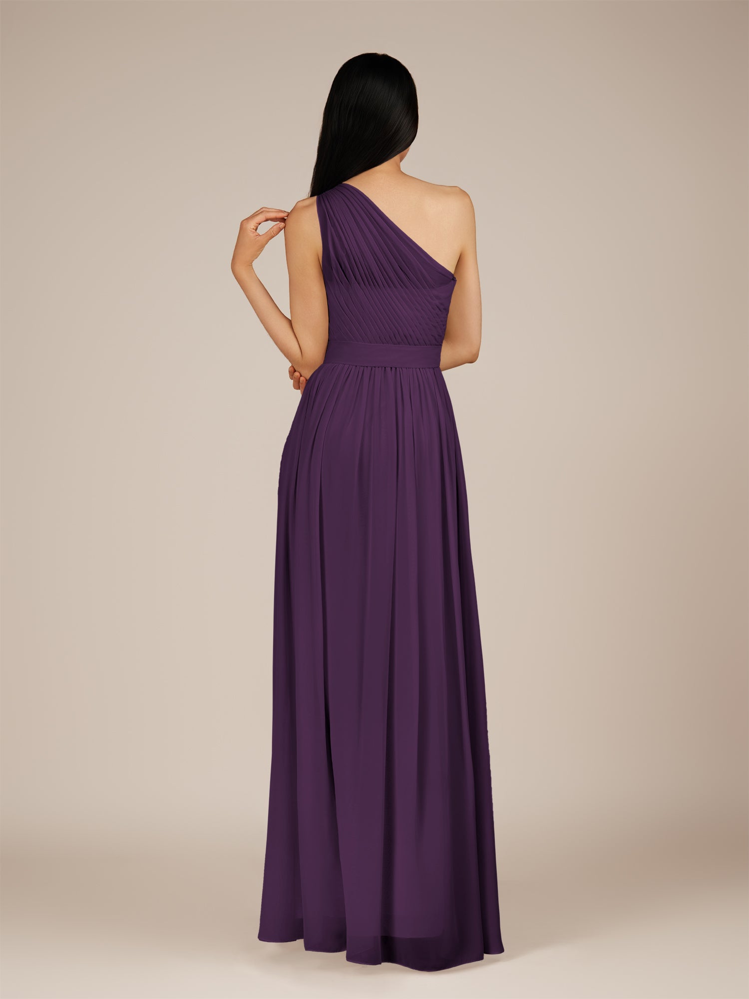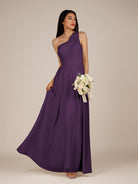 Juliet | Plum - A Line Chiffon One Shoulder Pleated Long Bridesmaid Dress