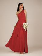Juliet | Ruby Red - A Line Chiffon One Shoulder Pleated Long Bridesmaid Dress