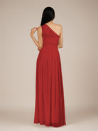 Juliet is a romantic and elegant choice for your bridal party. Crafted from soft chiffon, she features a flattering one-shoulder neckline and a delicately pleated bodice that enhances the waist. Her floor-length A-line skirt flows gracefully with every step, creating a timeless and feminine silhouette. Finished with a smooth zipper back, Juliet blends classic charm with effortless style, perfect for weddings and special occasions.