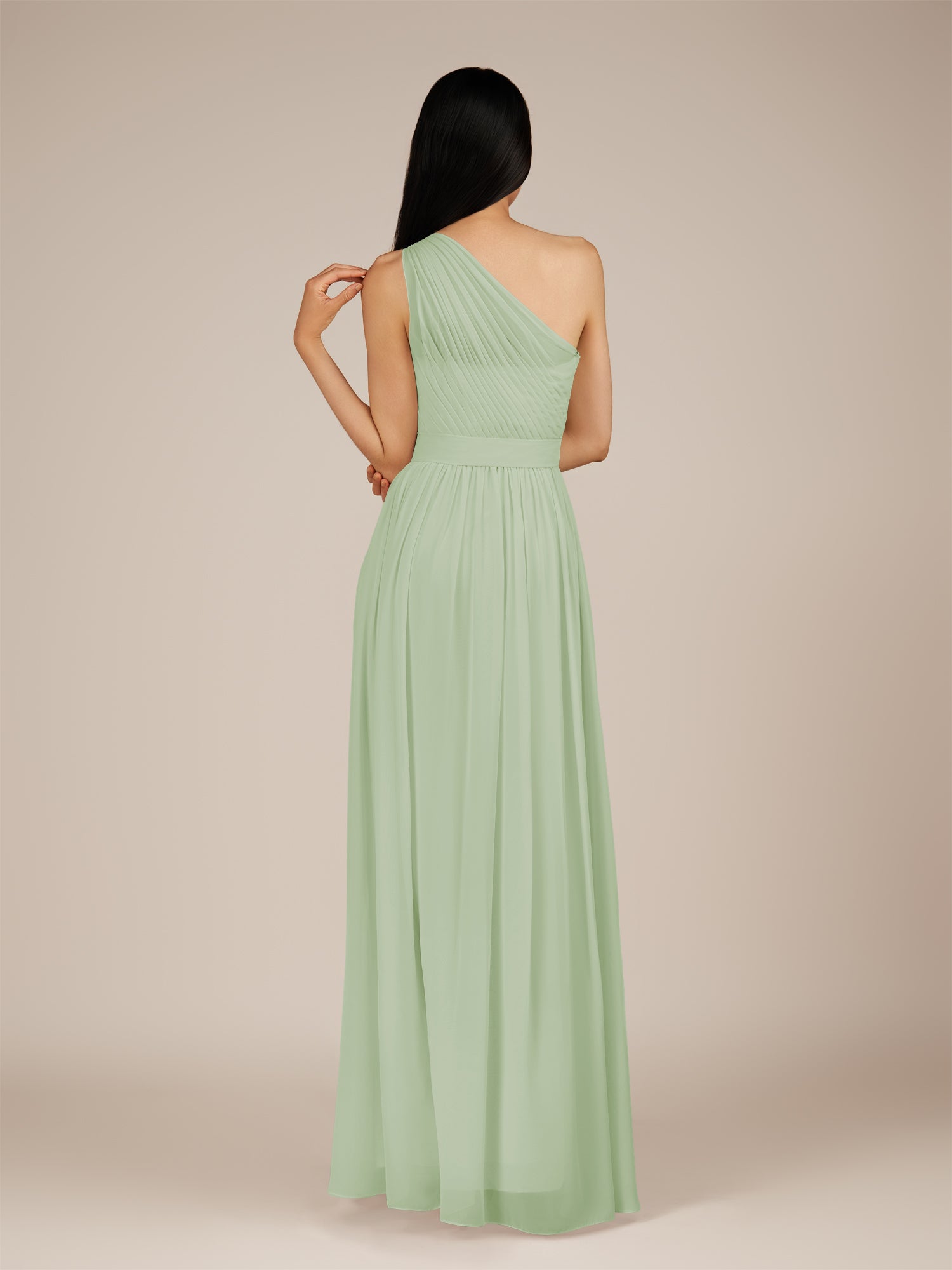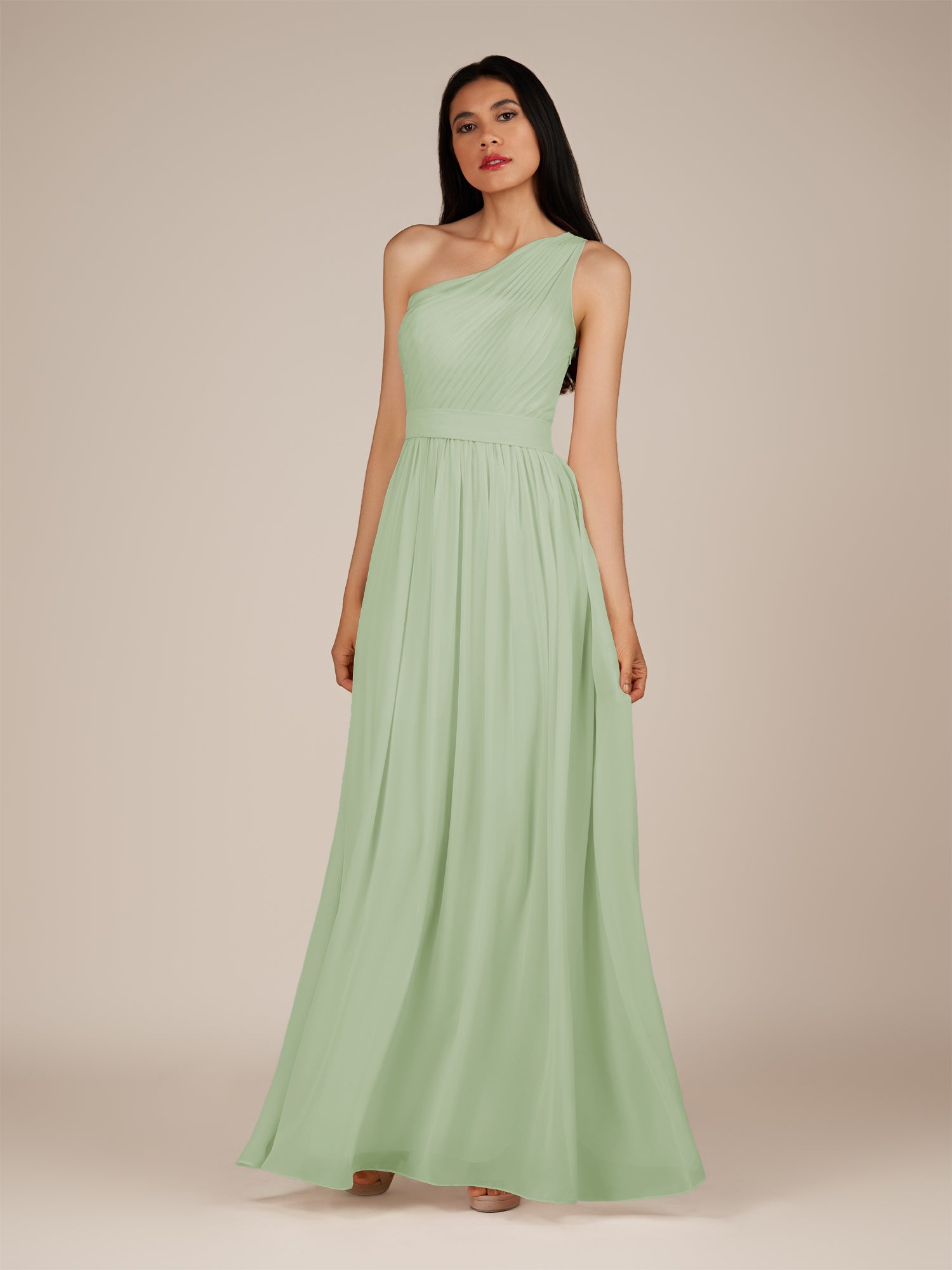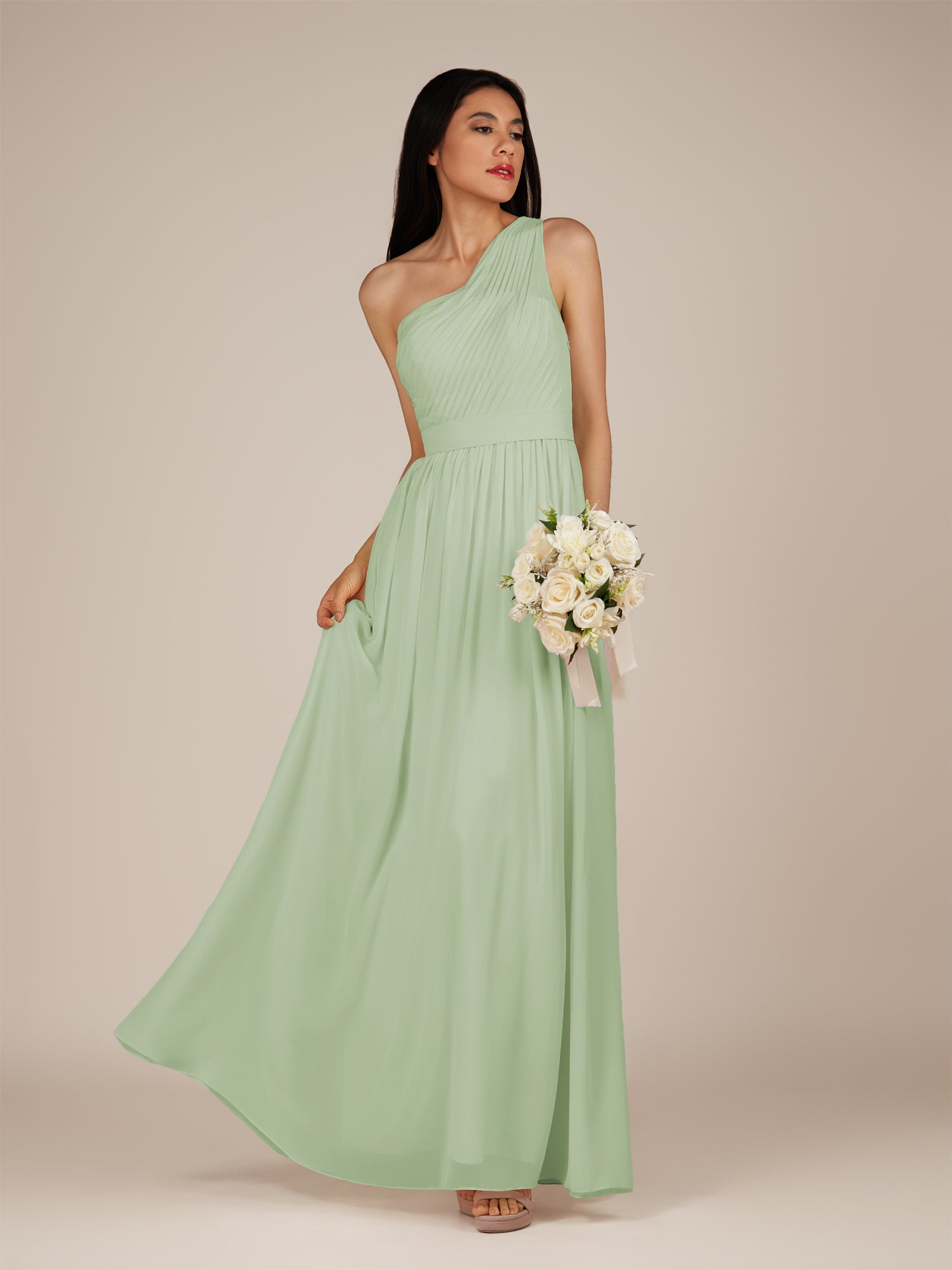 Juliet | Sage - A Line Chiffon One Shoulder Pleated Long Bridesmaid Dress