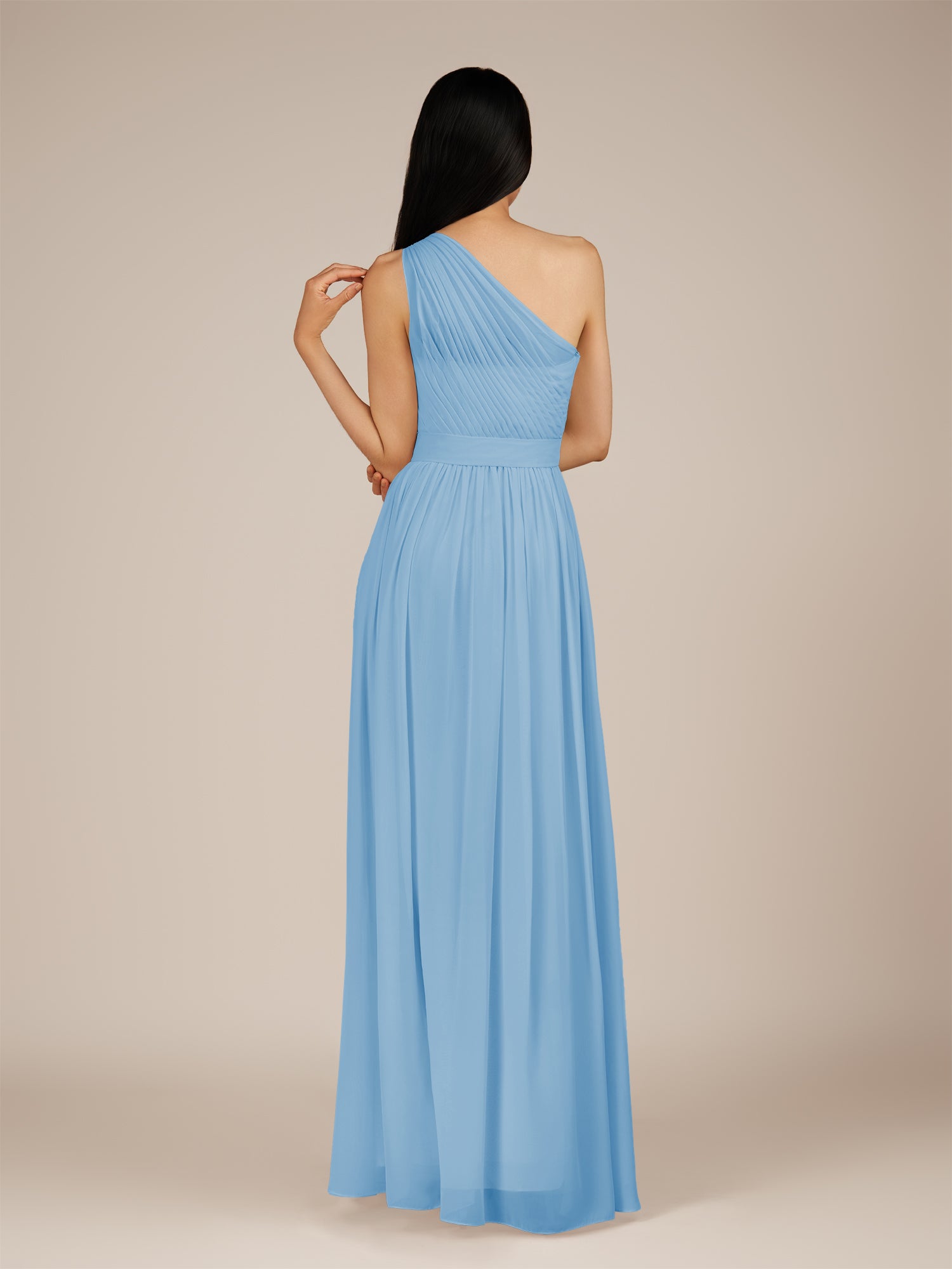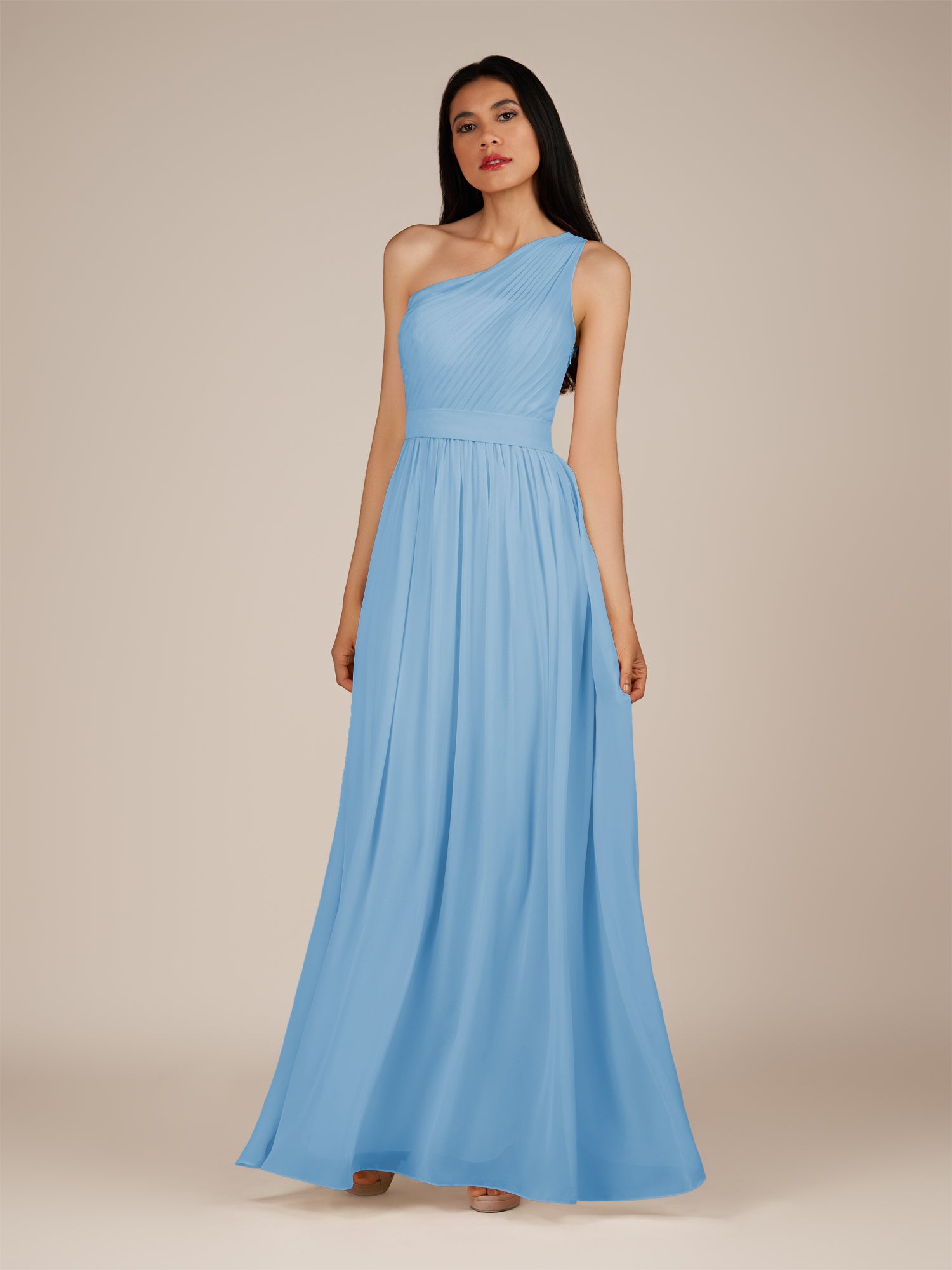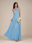 Juliet | Steel Blue - A Line Chiffon One Shoulder Pleated Long Bridesmaid Dress