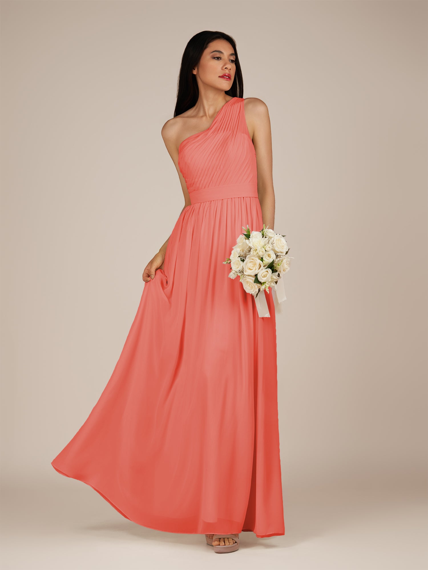 Juliet | Sunset - A Line Chiffon One Shoulder Pleated Long Bridesmaid Dress