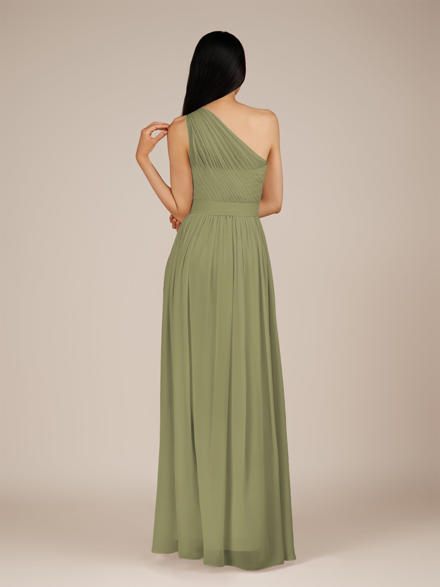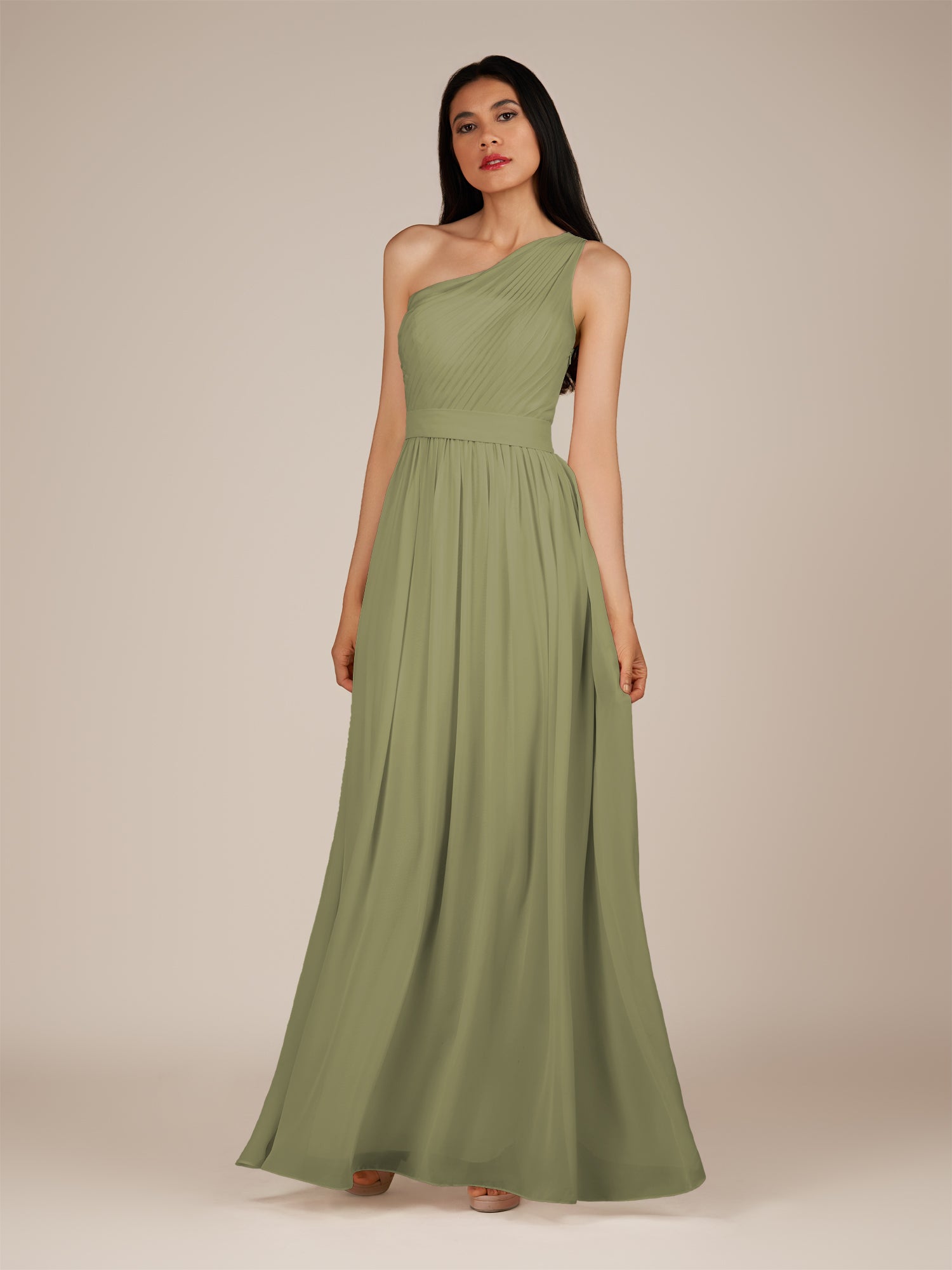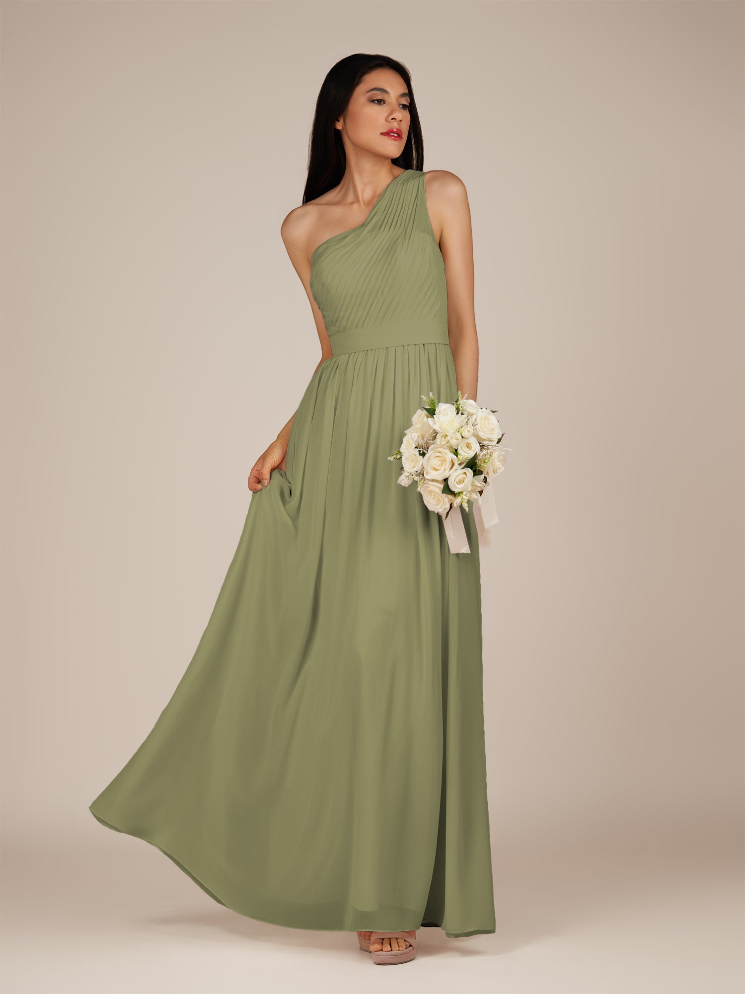 Juliet | Thyme - A Line Chiffon One Shoulder Pleated Long Bridesmaid Dress