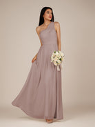 Juliet | Toffee - A Line Chiffon One Shoulder Pleated Long Bridesmaid Dress