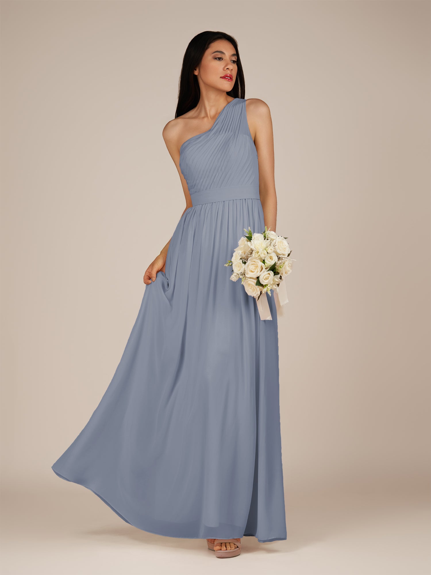 Juliet | Twilight - A Line Chiffon One Shoulder Pleated Long Bridesmaid Dress
