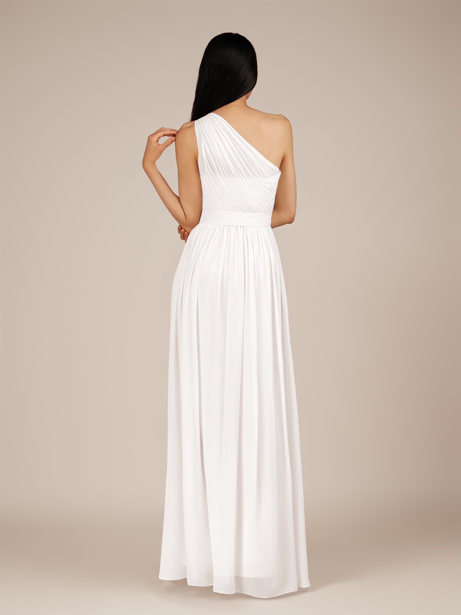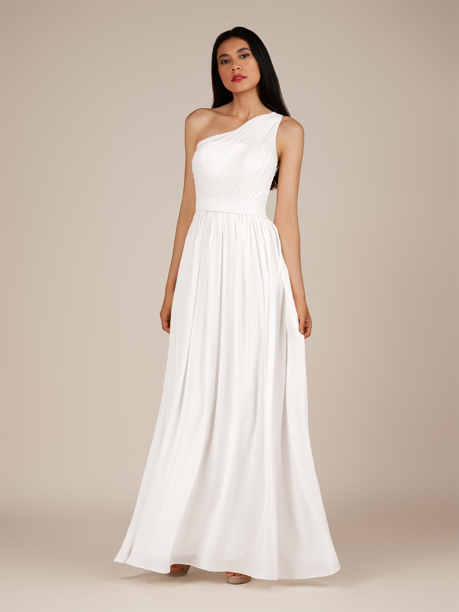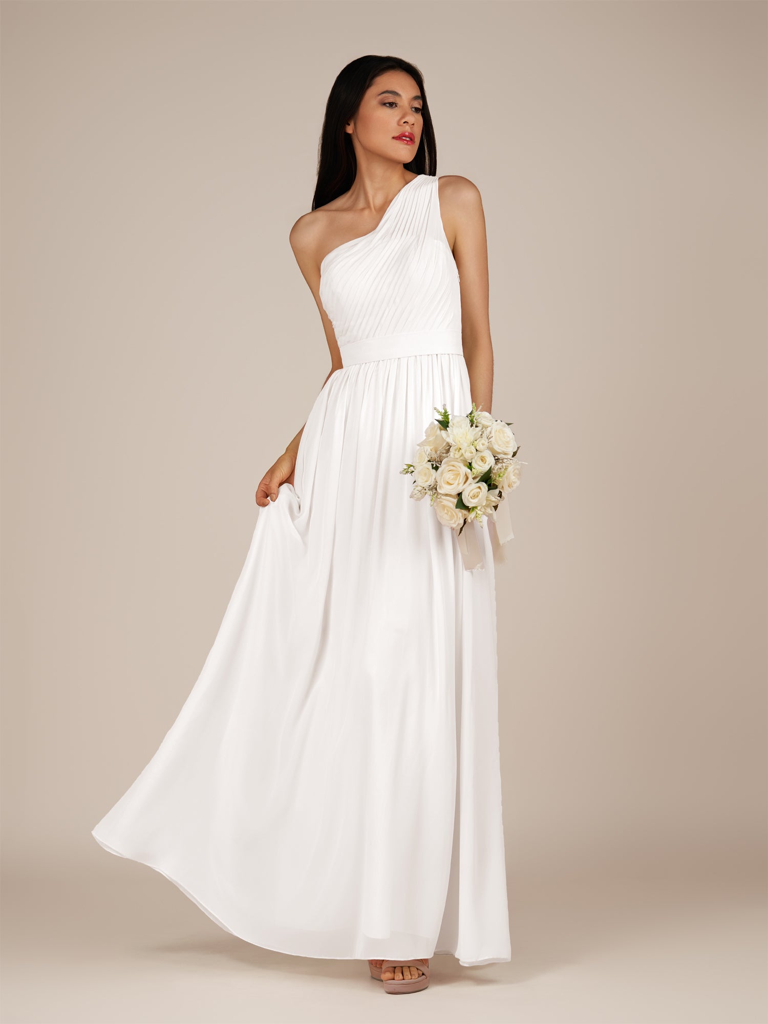 Juliet | White - A Line Chiffon One Shoulder Pleated Long Bridesmaid Dress