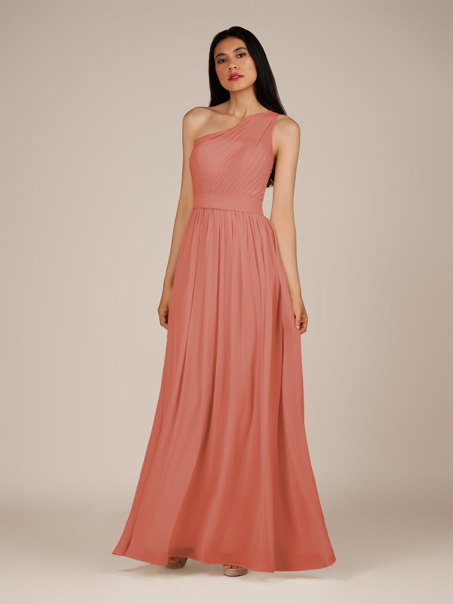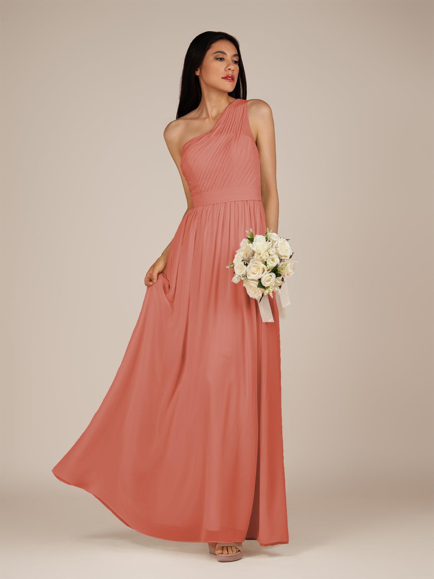 Juliet | Wild Rose - A Line Chiffon One Shoulder Pleated Long Bridesmaid Dress