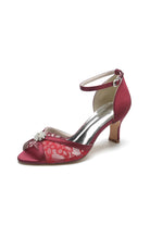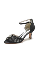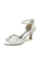- These Lace Beaded Peep Toe Imitated Silk High Heels combine elegance and sophistication with their intricate lace embellishments.