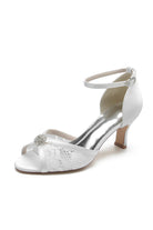 Lace Beaded Peep Toe Imitated Silk High Heels