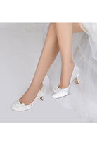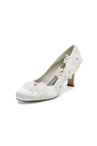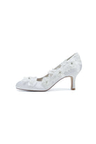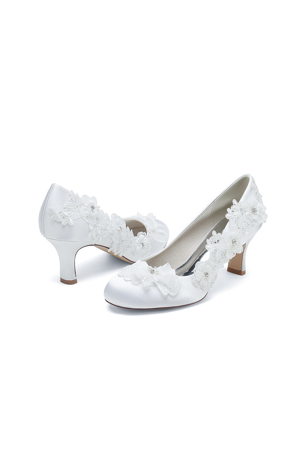 Stylish lace pointed toe chunky heels embellished with shimmering beads, offering a perfect blend of elegance and comfort.
