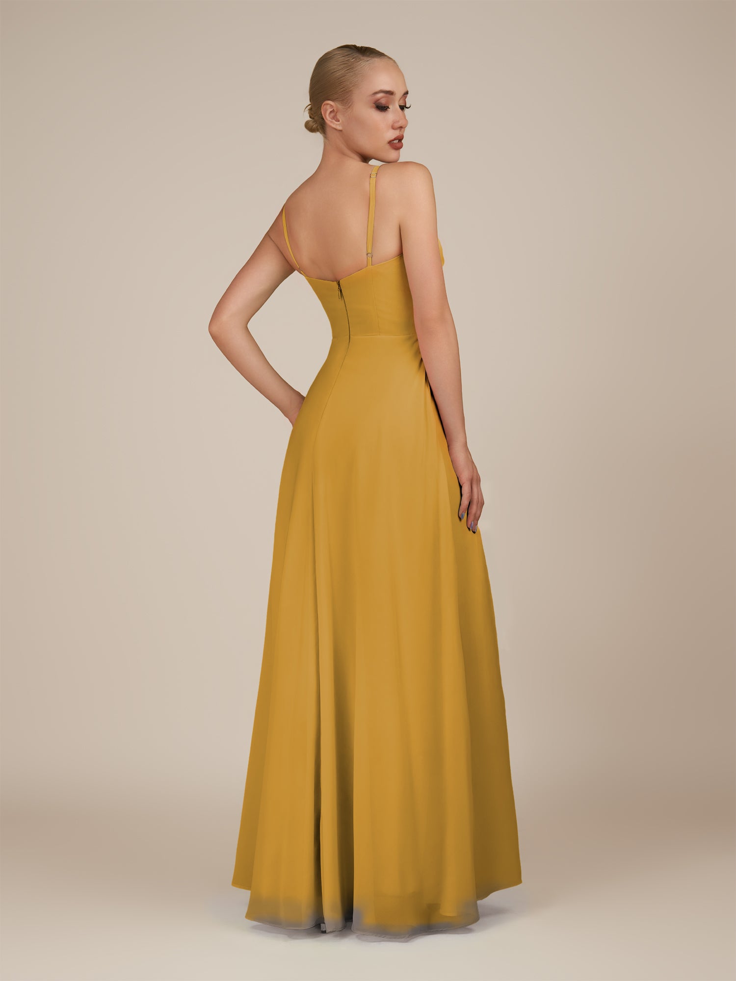 Lavatera is a romantic and elegant choice for your bridal party. Crafted from soft chiffon, she features a flattering V-neckline and a sleeveless bodice for a timeless silhouette. Her floor-length A-line skirt flows gracefully with every step, enhanced by delicate ruffles and a subtle side slit for movement and charm. Finished with a smooth zipper back, Lavatera combines classic sophistication with modern elegance, perfect for weddings and special occasions.