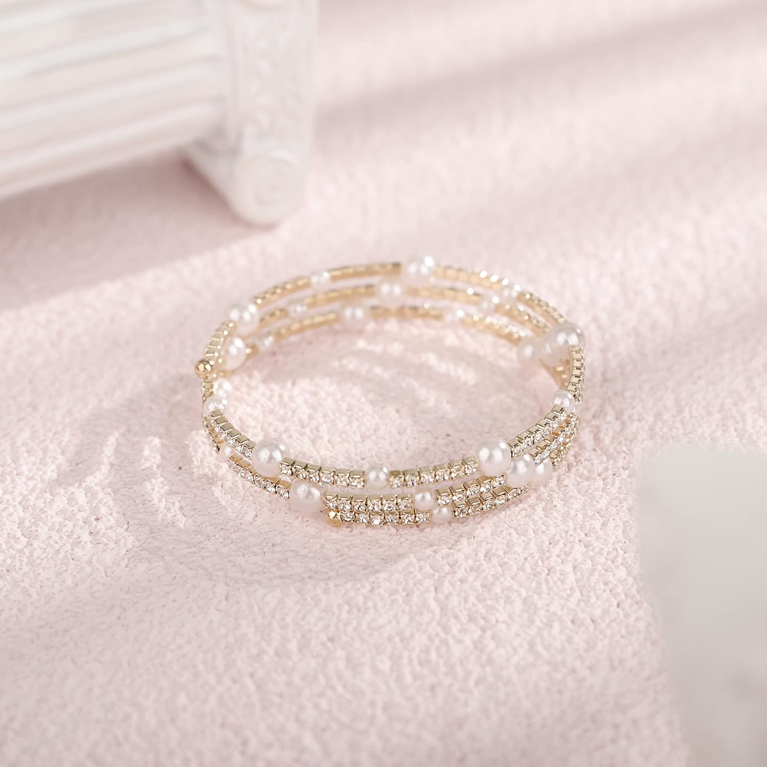 Multi Layered Stretch Wrap Silver Bracelets with Rhinestone