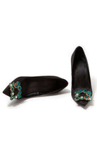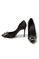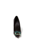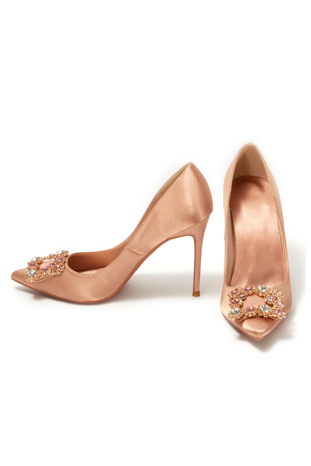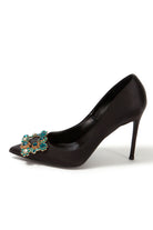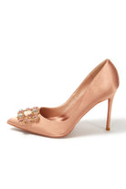Navy Wedding Satin Pointed Toe Rhinestones Buckle Stiletto Heel Pumps
