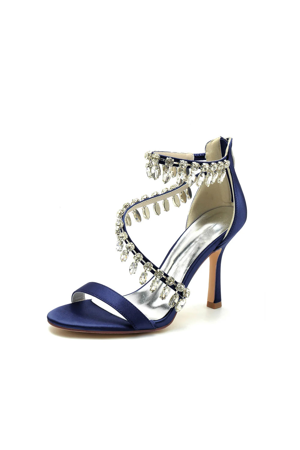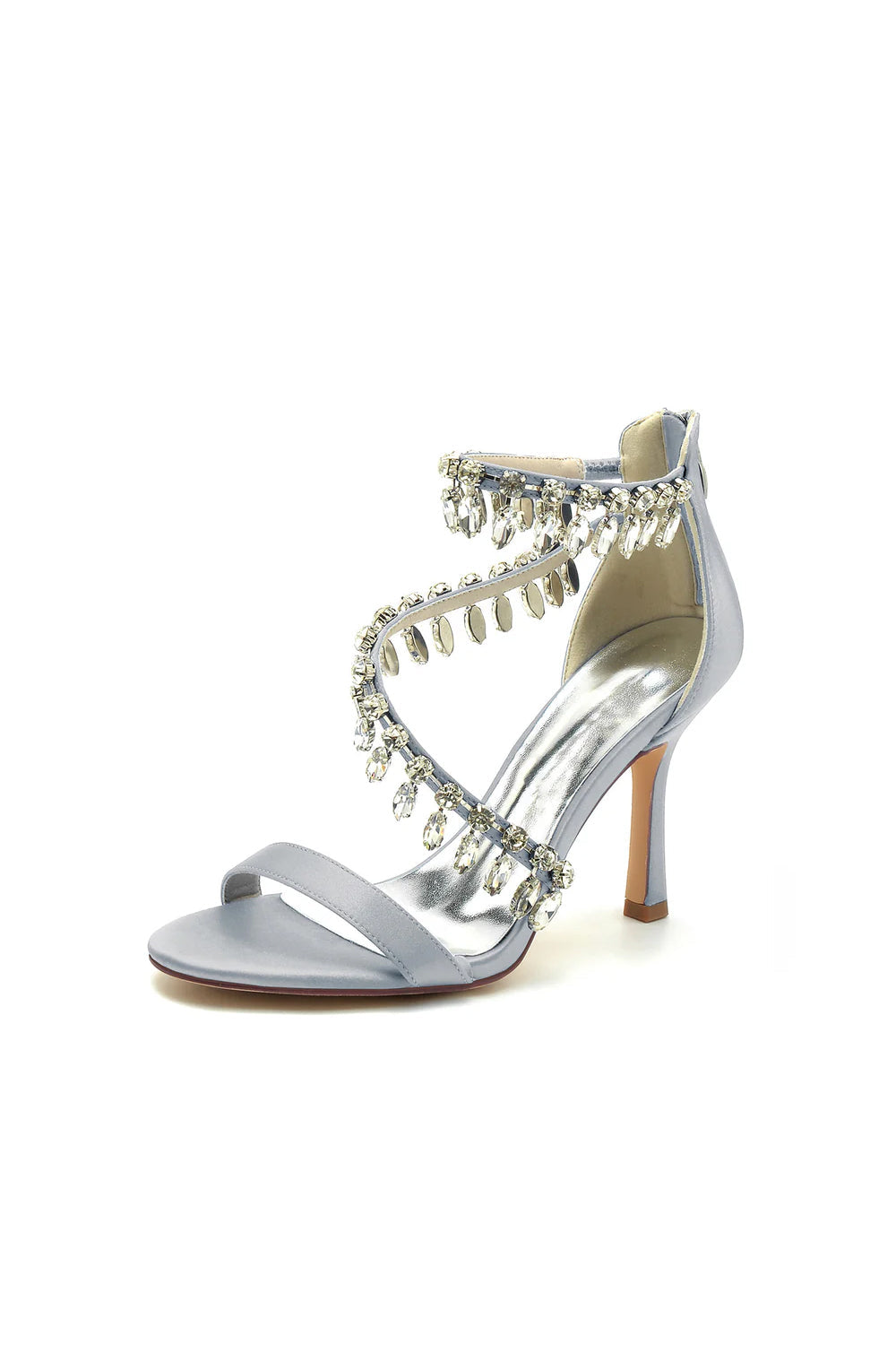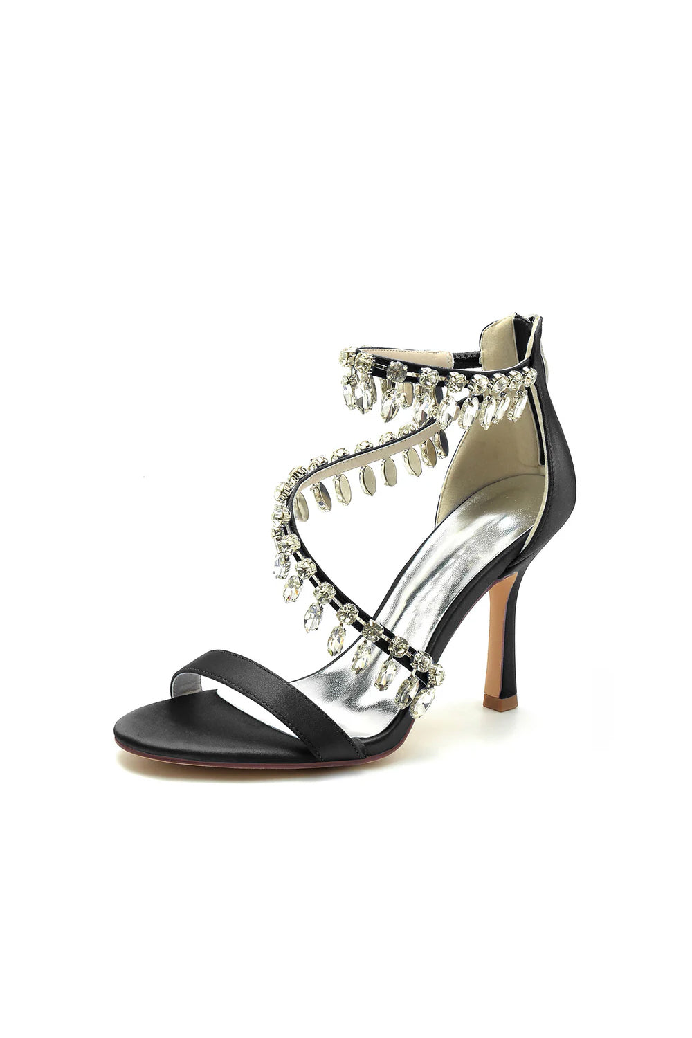 - Step into sophistication with these Open Toe Crystal Ankle Strap Stiletto Sandals, designed to captivate with their sparkling crystal embellishments.