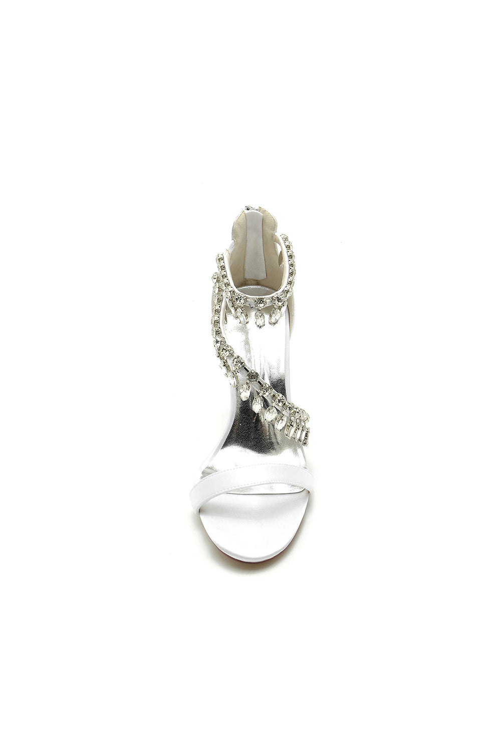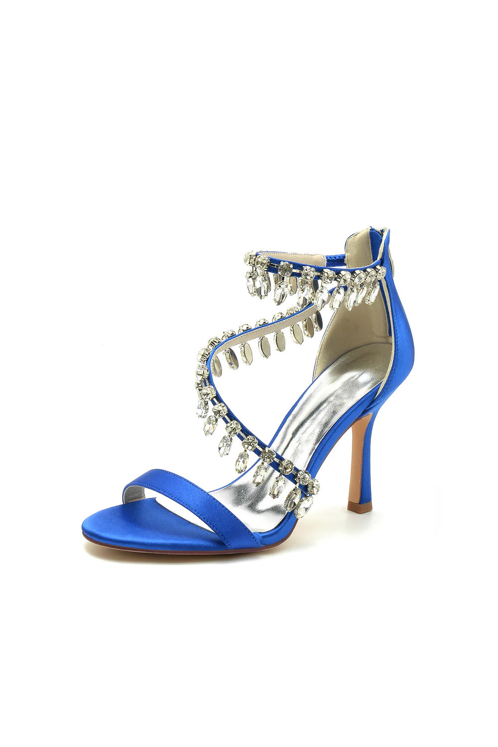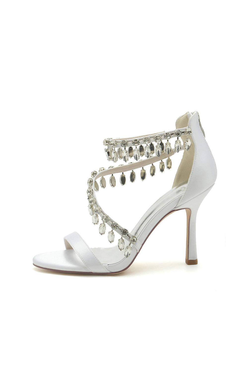 - Step into sophistication with these Open Toe Crystal Ankle Strap Stiletto Sandals, designed to captivate with their sparkling crystal embellishments.