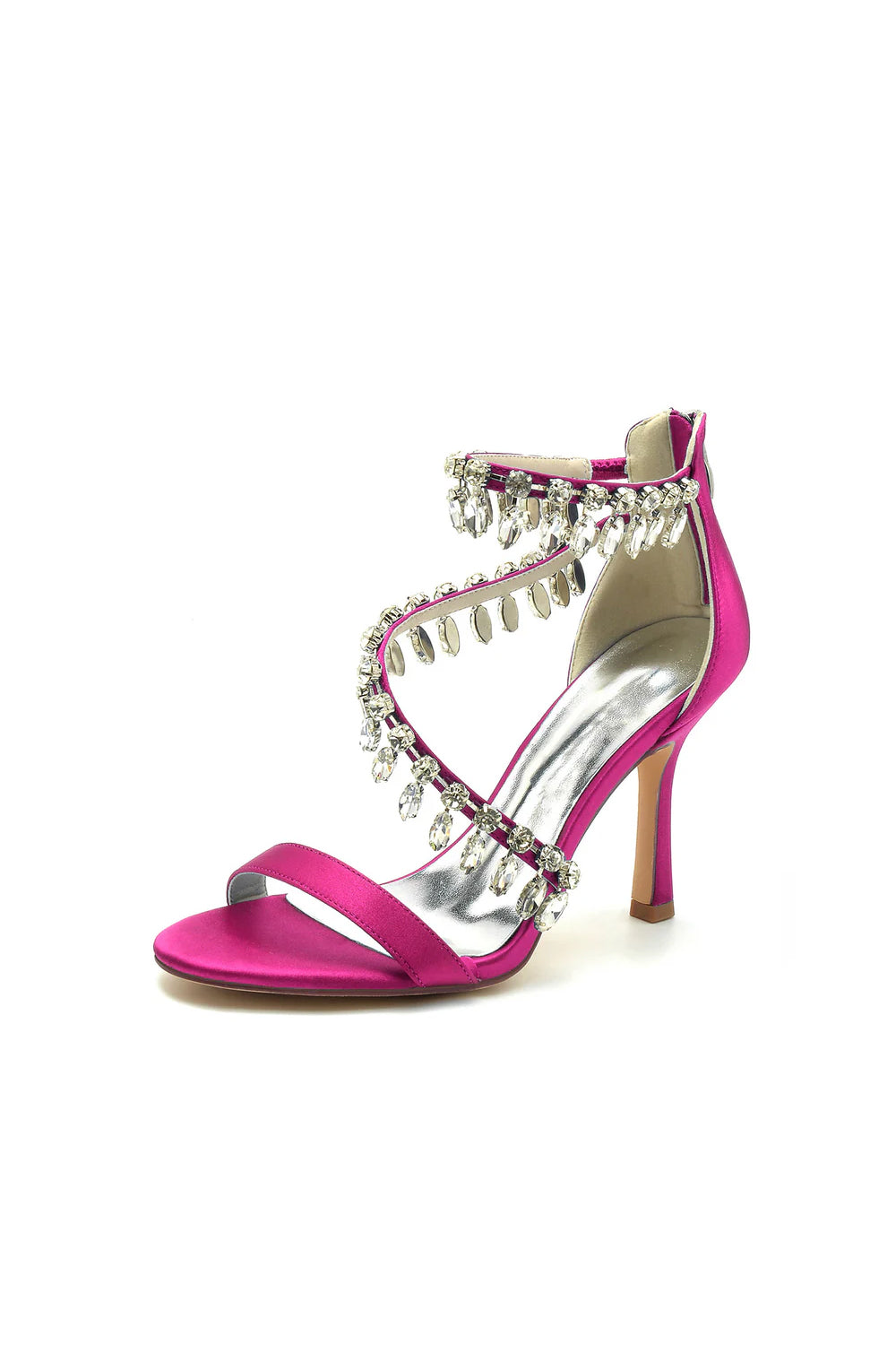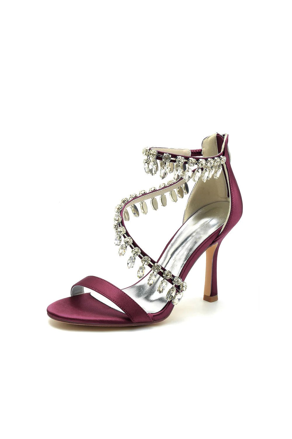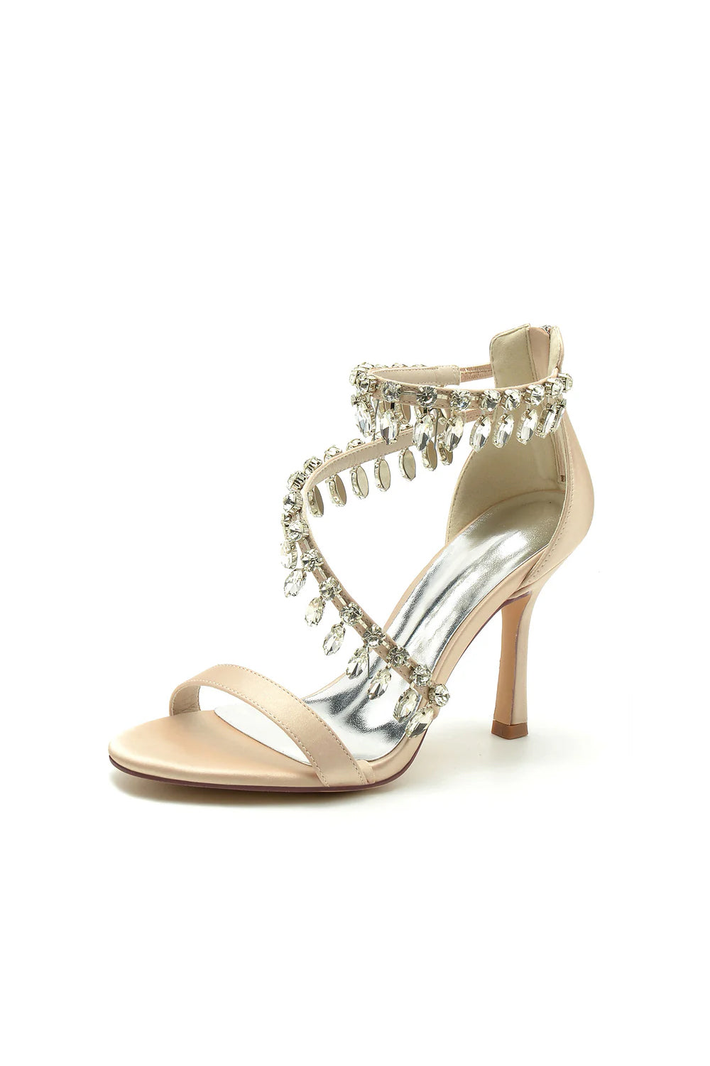 Open Toe Crystal Ankle Strap Stiletto Sandals