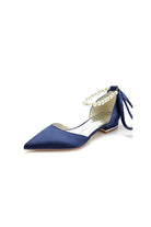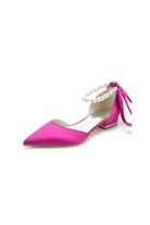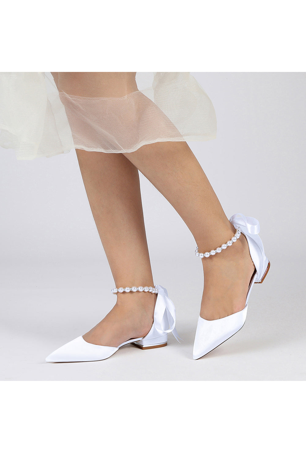 Pearl Ribbon Pointed Toe Ankle Strap Kitten Heels