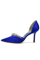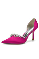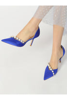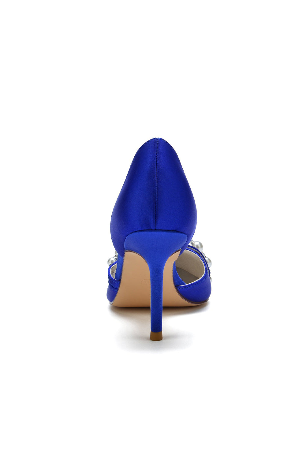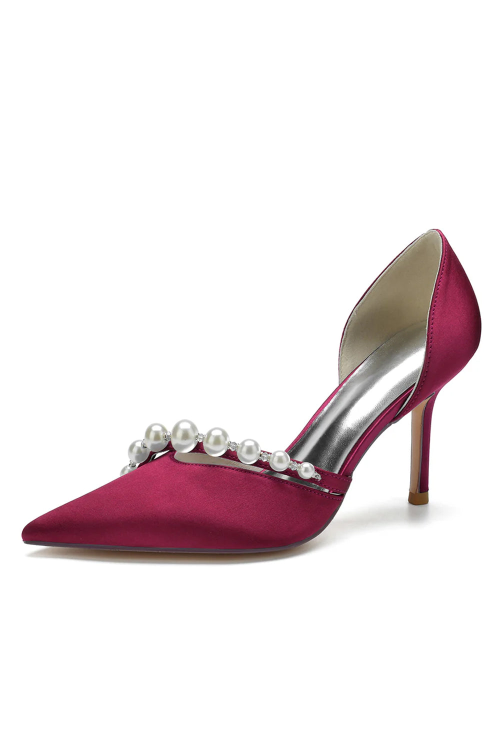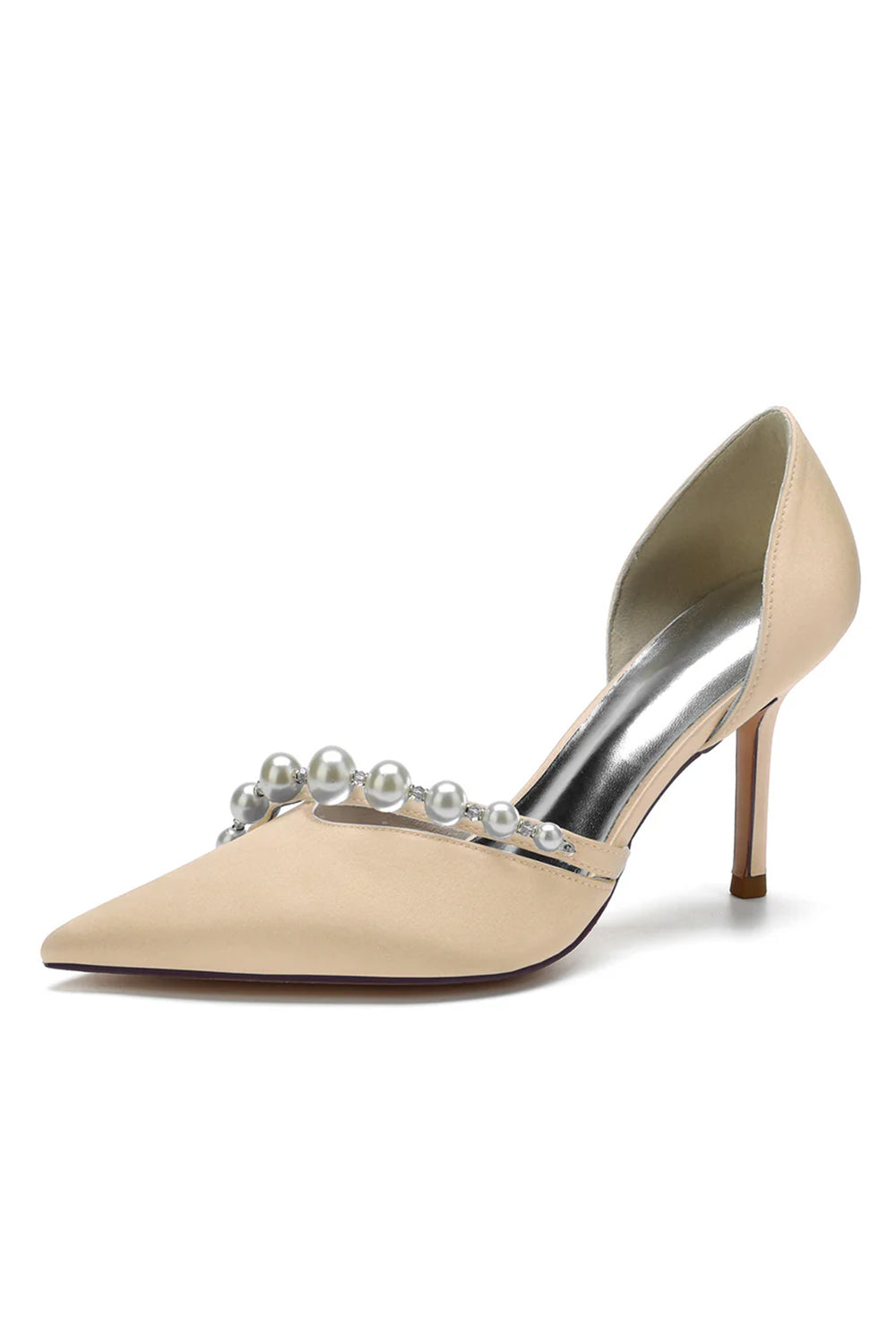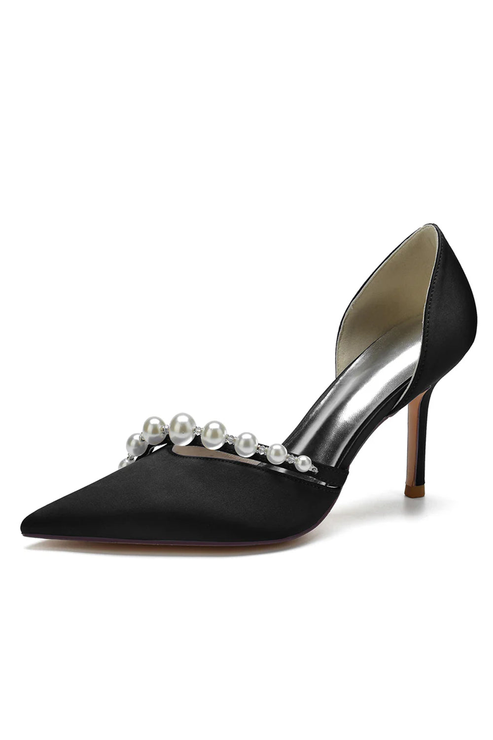These satin high heels, featuring pearl straps and pointed toes, blend sophistication with grace, adding a touch of elegance to any ensemble.