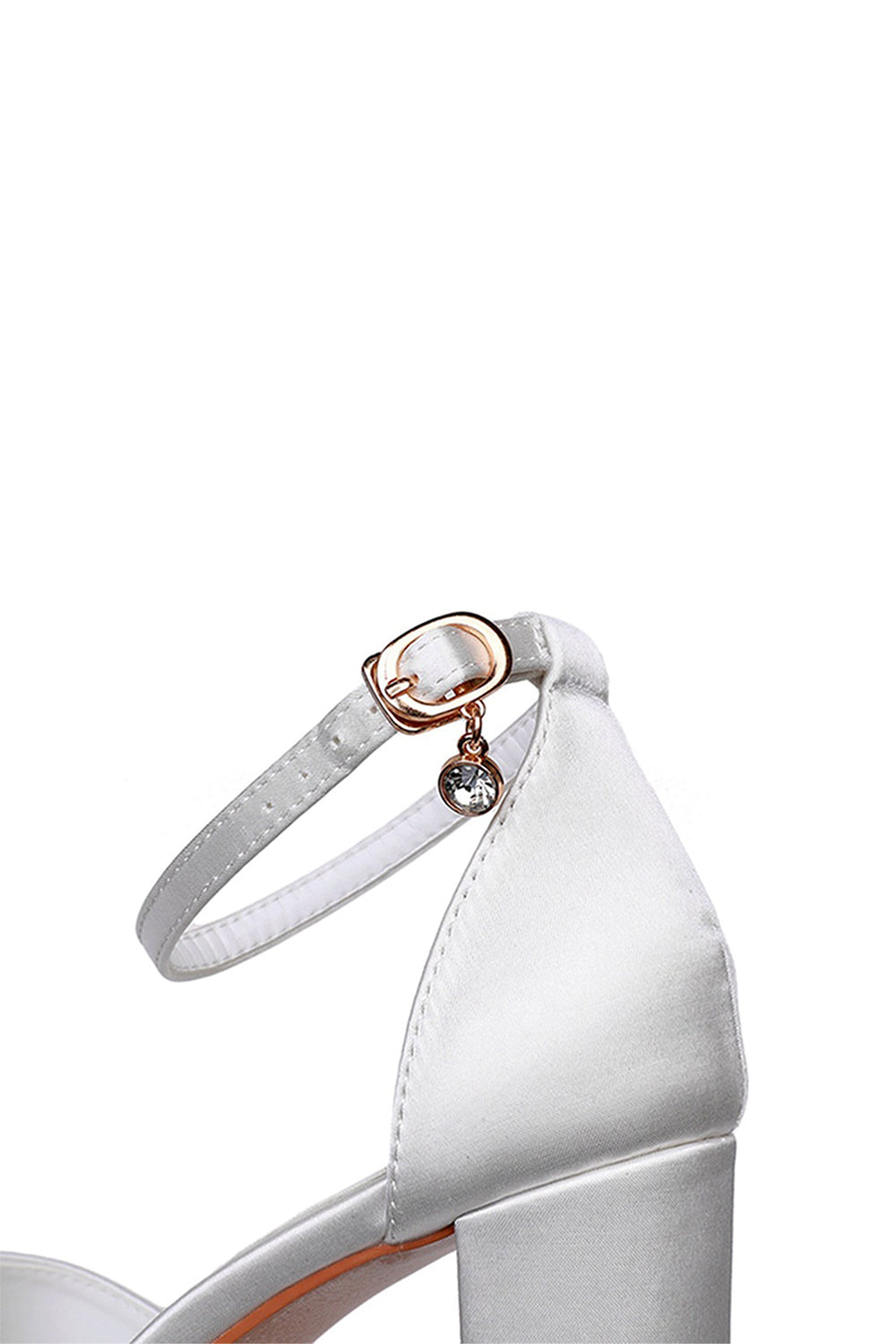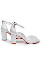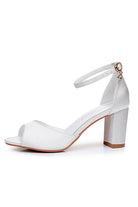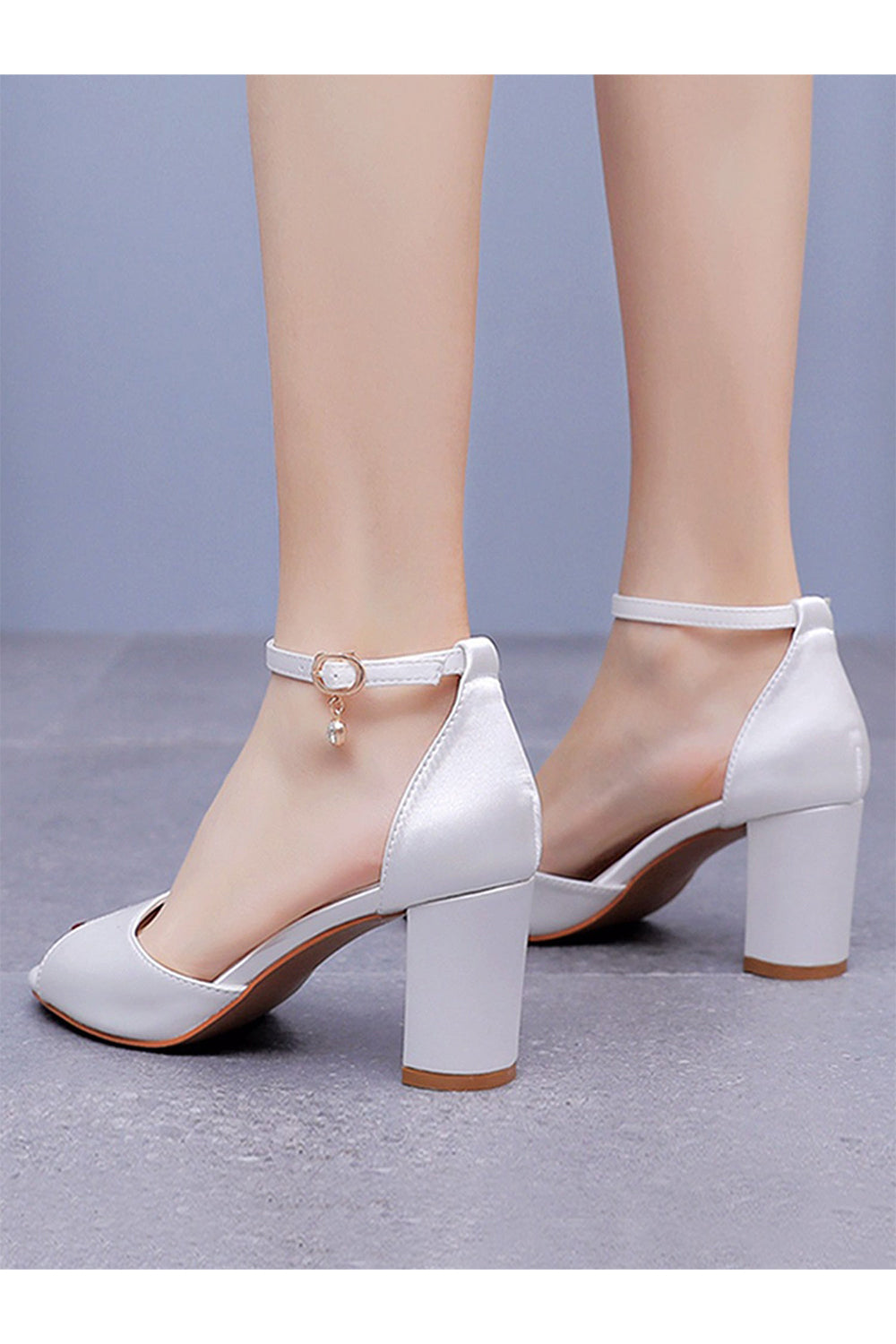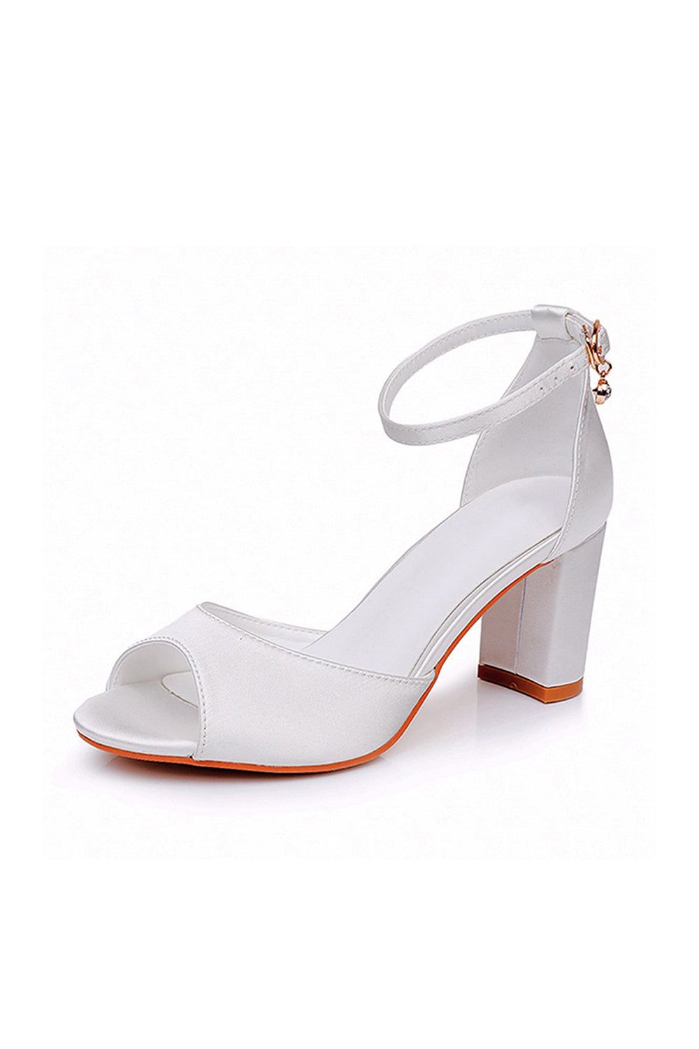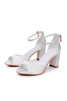 - Elevate your bridal look with these Peep Toe Ankle-Strap Bridal Chunky Heel Sandals. Featuring a stylish peep toe design and secure ankle-strap, they offer both elegance and comfort for your special day.