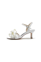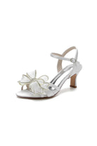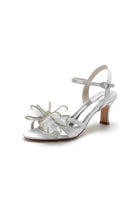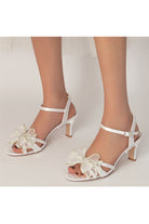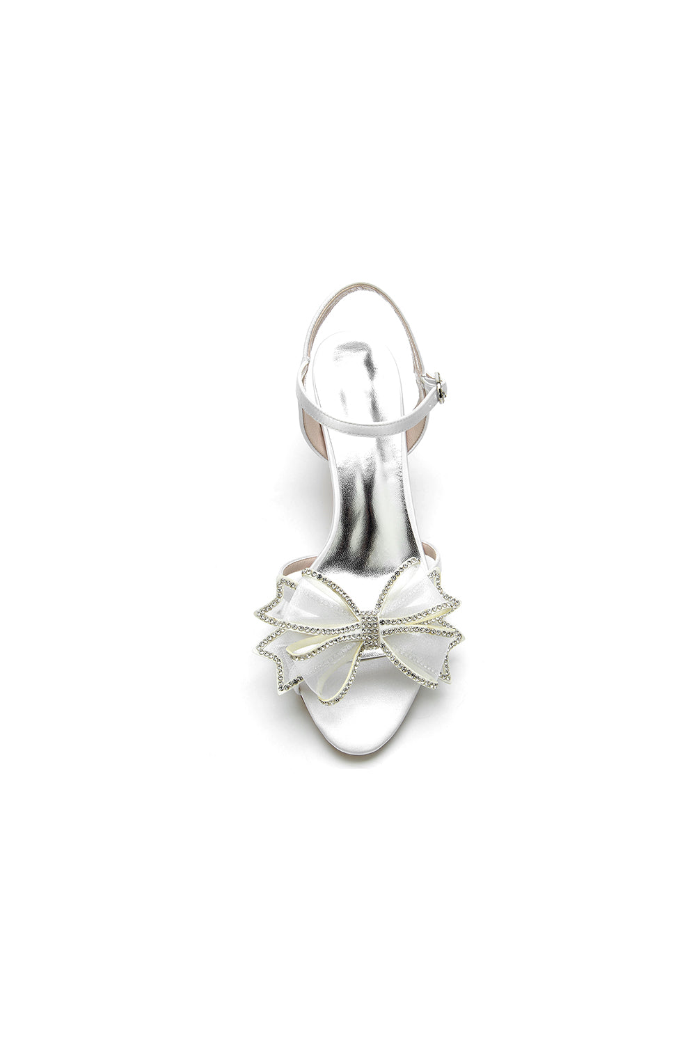 Charming peep toe chunky wedding shoes featuring a delightful bow, adding a touch of whimsy and elegance to your bridal ensemble.