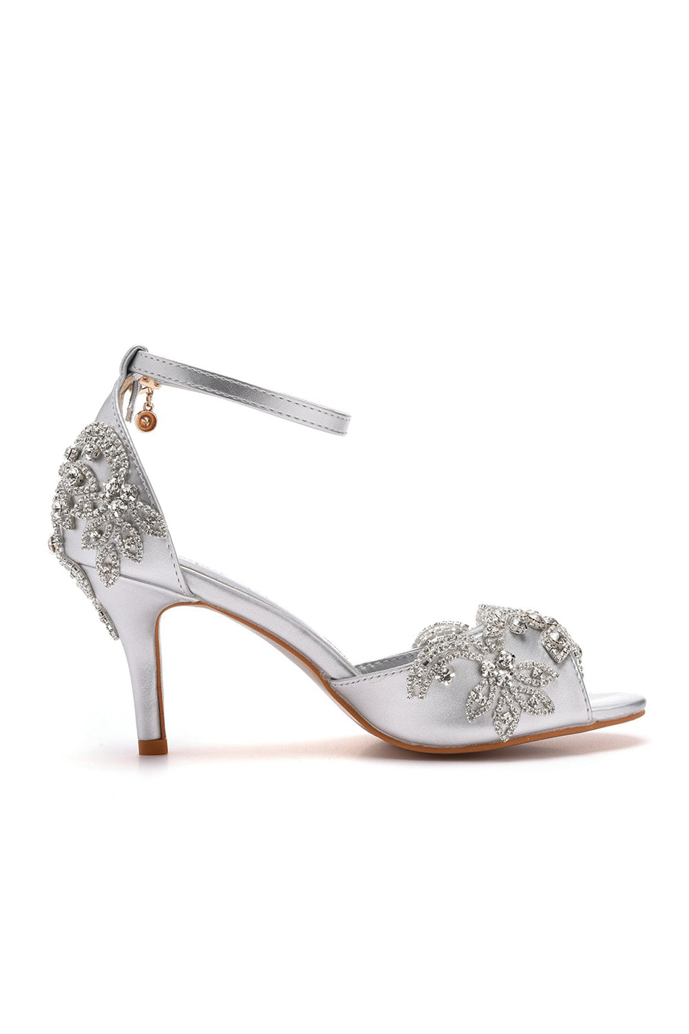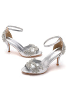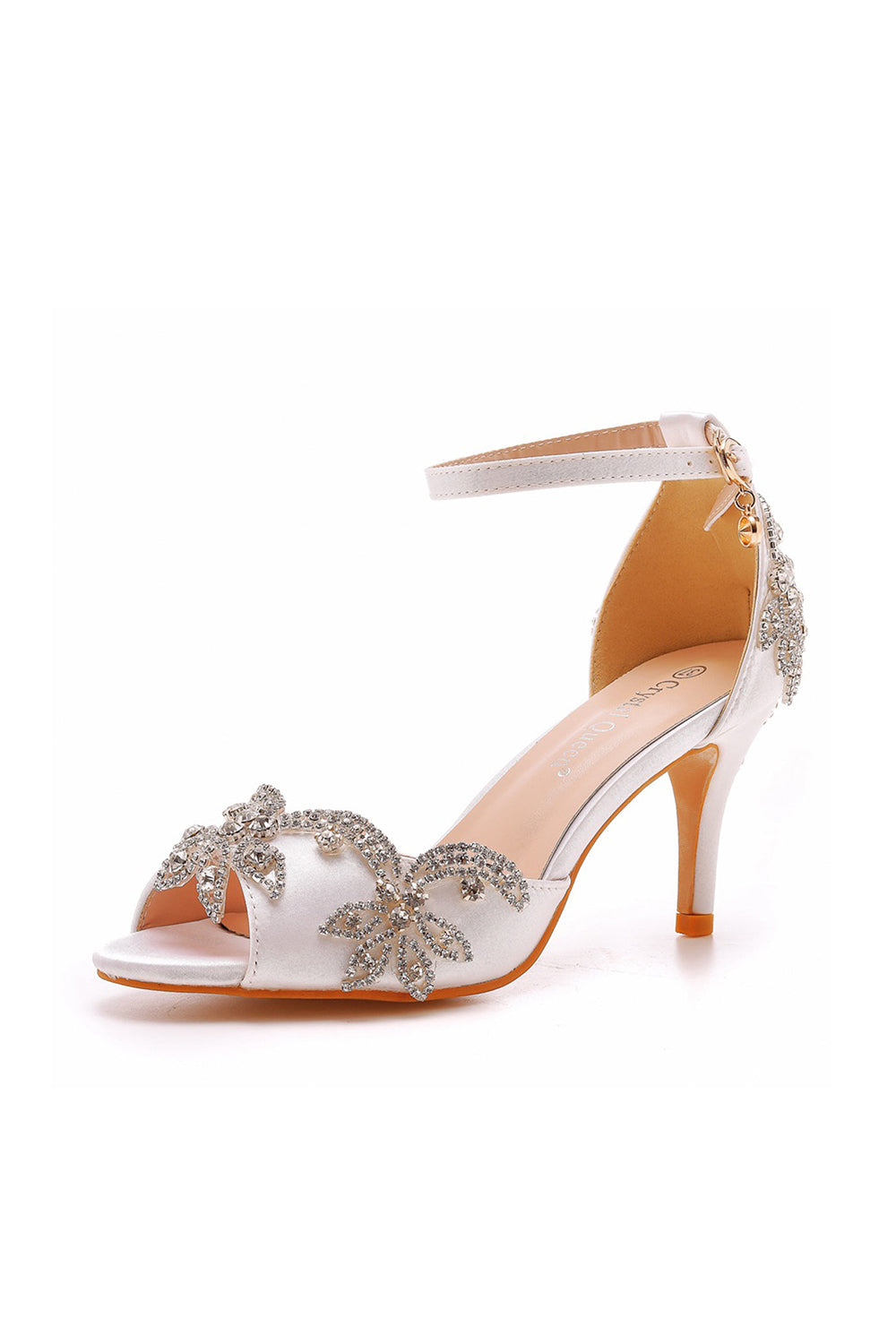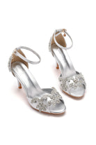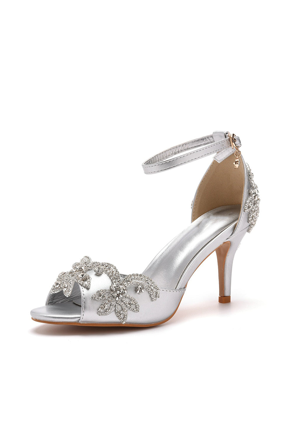 Peep Toe Satin Rhinestone Ankle Strap High Heels