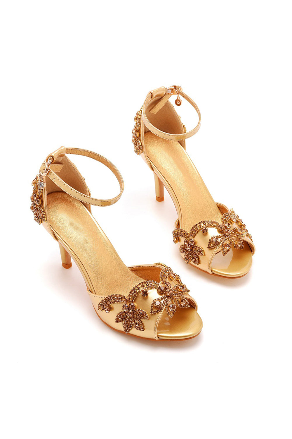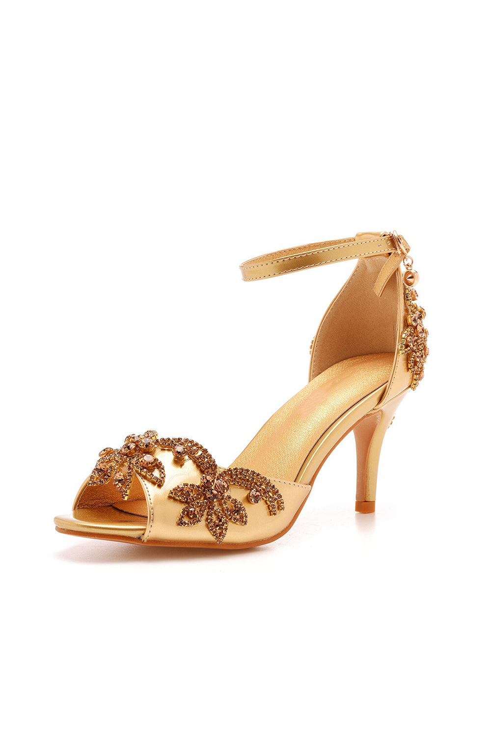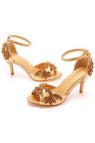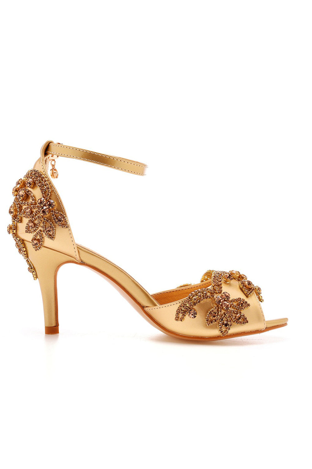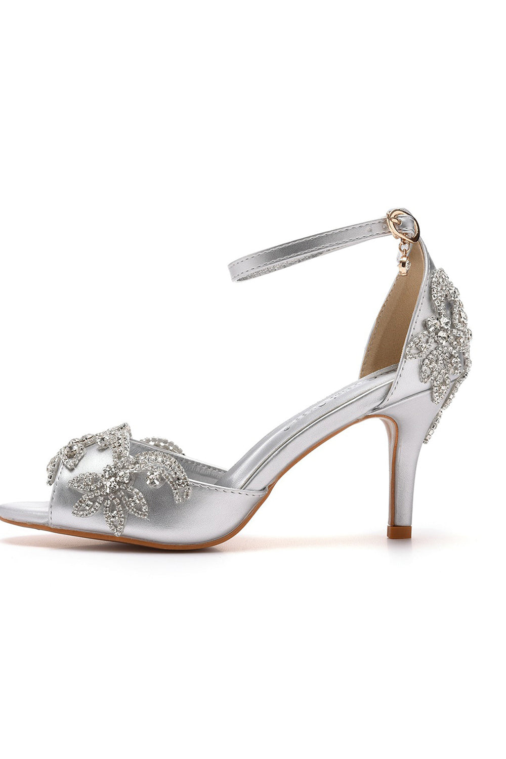Peep Toe Satin Rhinestone Ankle Strap High Heels