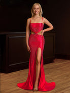 Exude confidence and glamour in the Red Spaghetti Straps Cutout Beaded Mermaid Long Dress With Split. This bold and captivating dress combines the rich sheen of satin with striking design details that are sure to turn heads. The vivid red color commands attention, making this dress perfect for any occasion where you want to make a memorable entrance. The flattering spaghetti straps add an elegant touch to the neckline, while the mermaid silhouette highlights your curves in all the right places. A fabulous selection for both evening dresses and formal dresses, with its unique cutout detailing at the waist introduces a modern, edgy twist to this classic style, creating a daring yet tasteful design. A sultry thigh-high split provides both drama and ease of movement, allowing you to dance the night away with grace. The Beading embellishments on the bodice add a touch of sparkle, catching the light with every step, and enhancing the overall luxury of the dress.