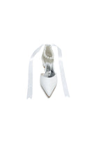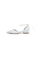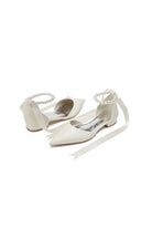 Pointed Toe Ankle Strap Pearl Beaded Ivory Ribbons Low Heels