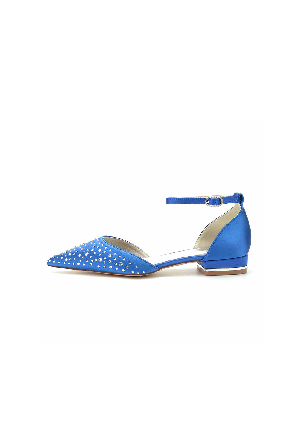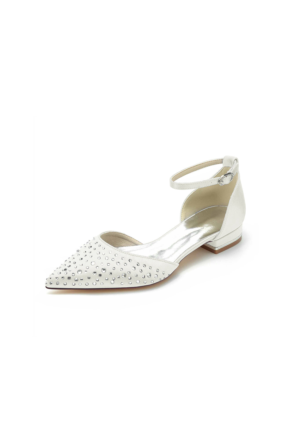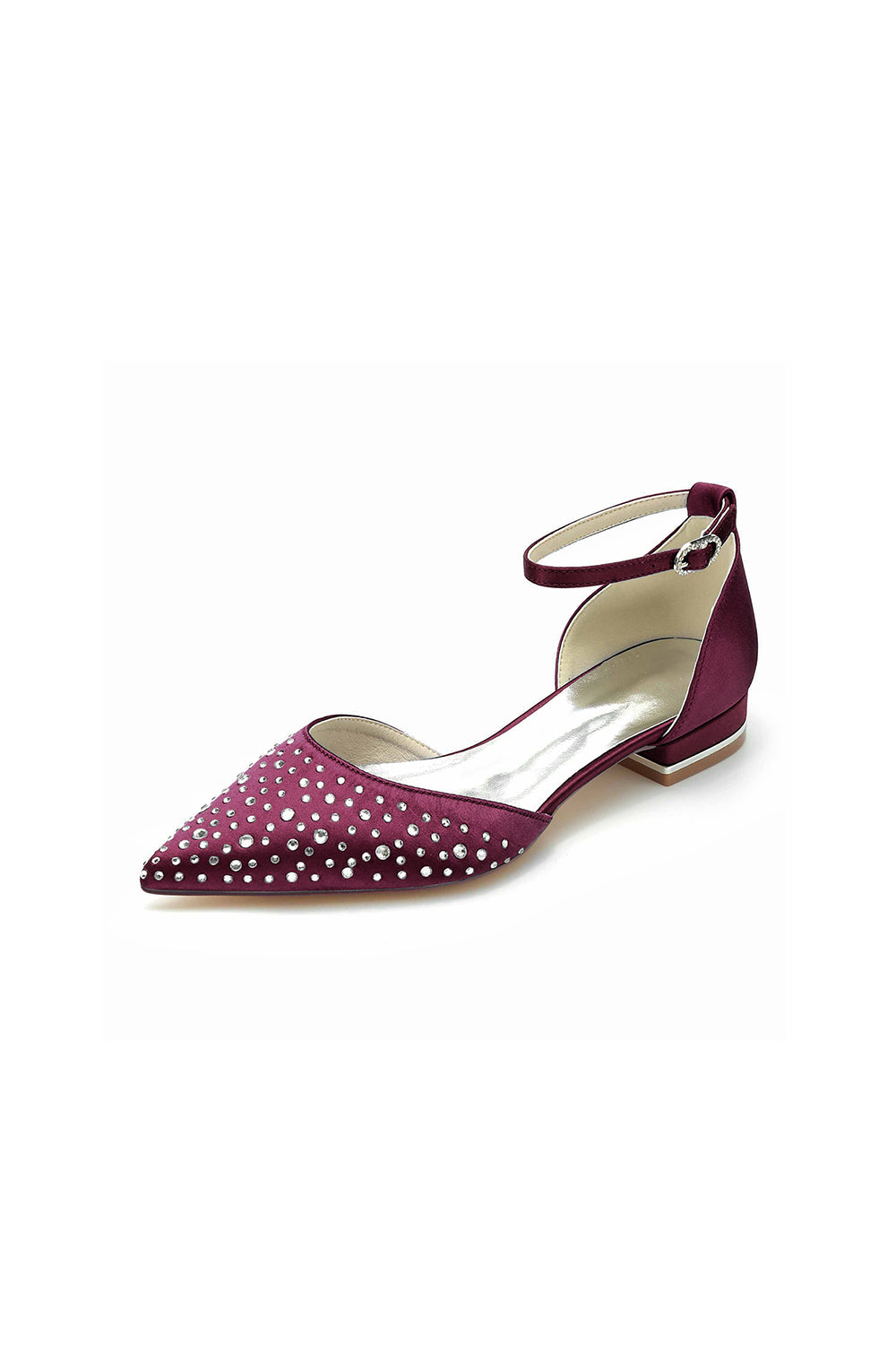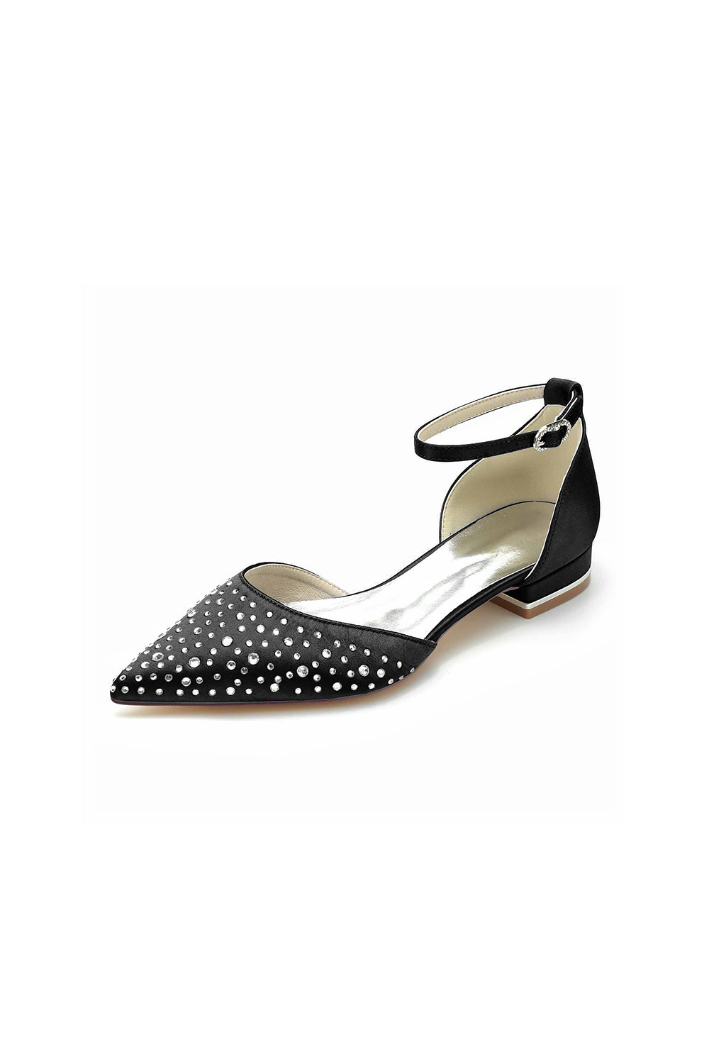 Pointed Toe Beaded Ankle Strap Buckle Kitten Heels