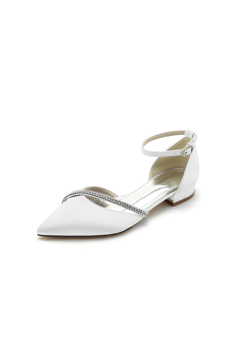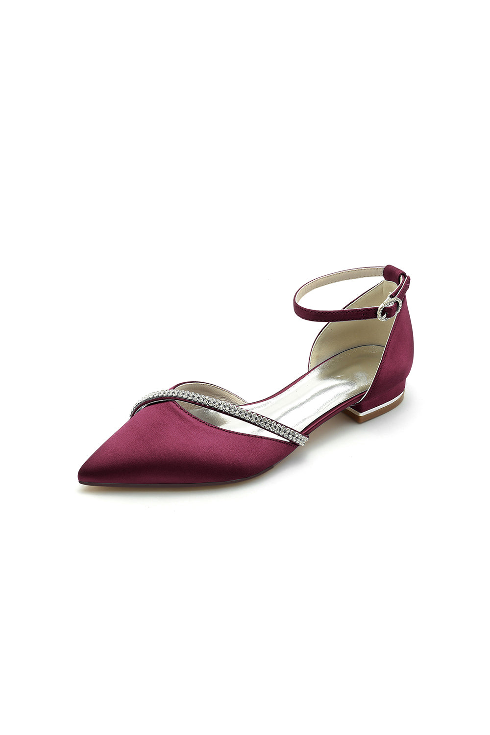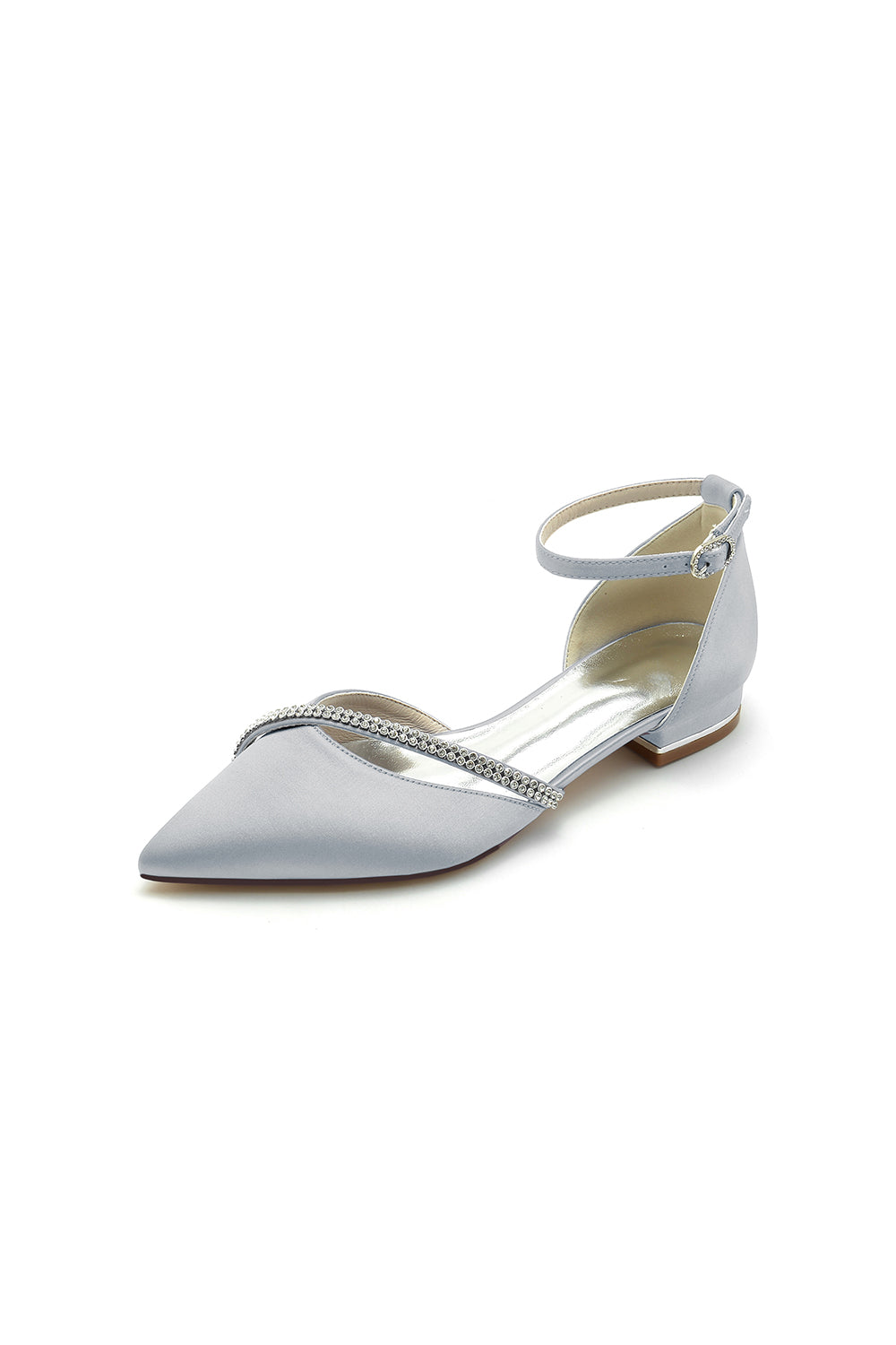 Pointed Toe Beaded Ankle Strap Kitten Heels