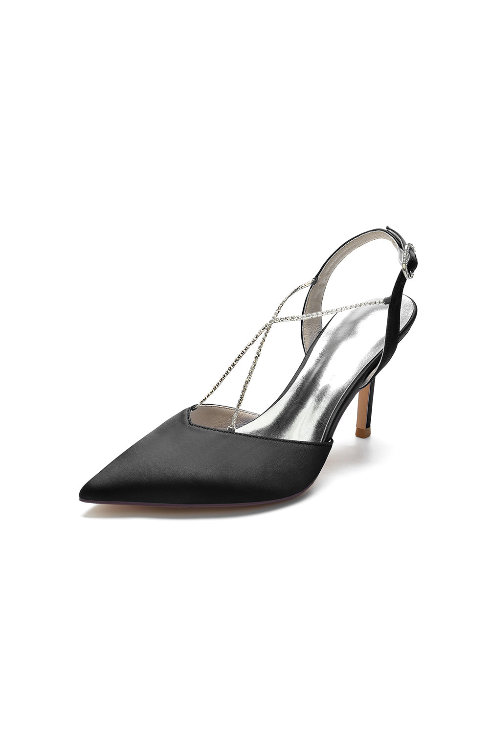 Pointed Toe Crystal Ankle Strap Stiletto Heels