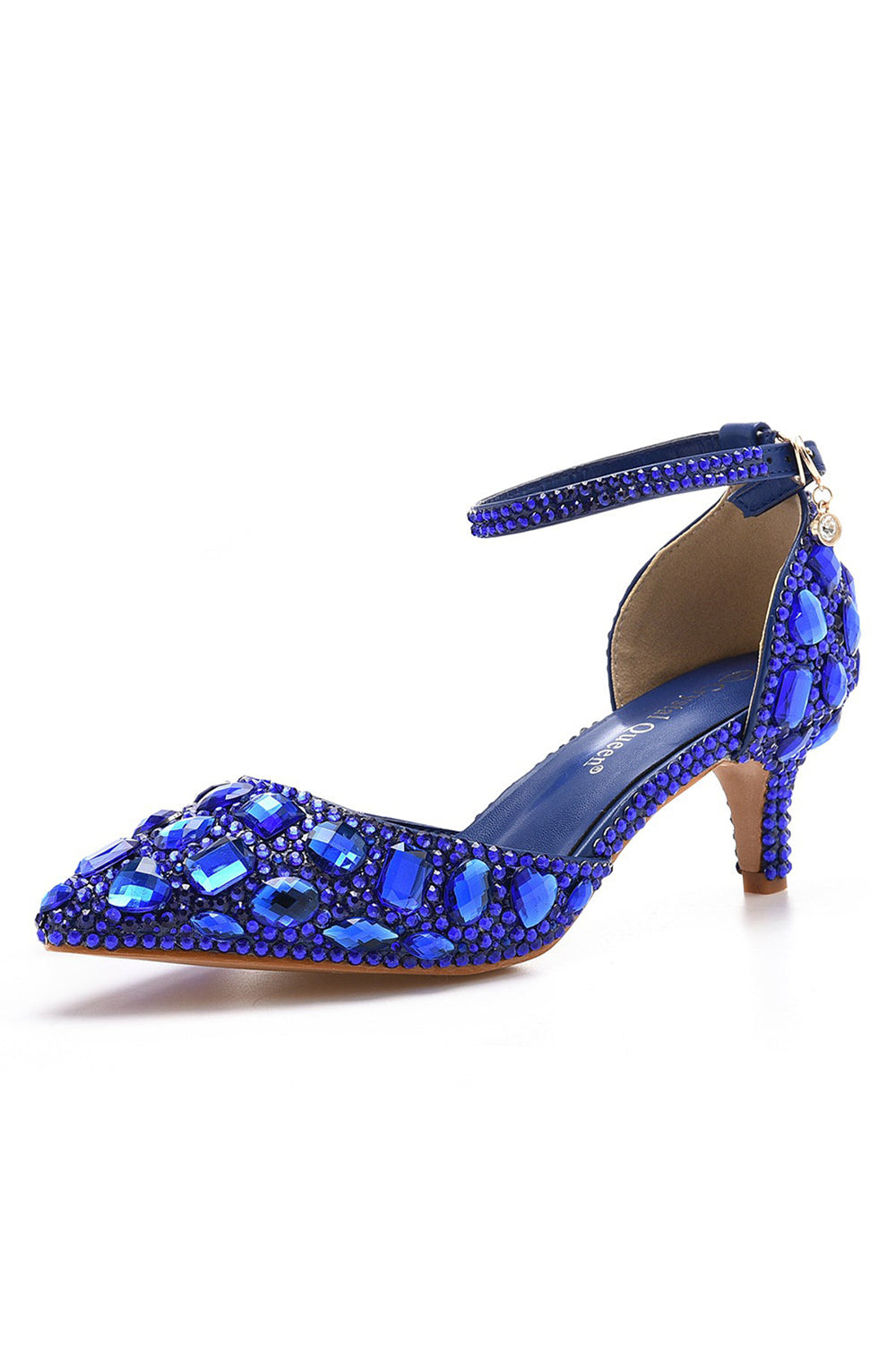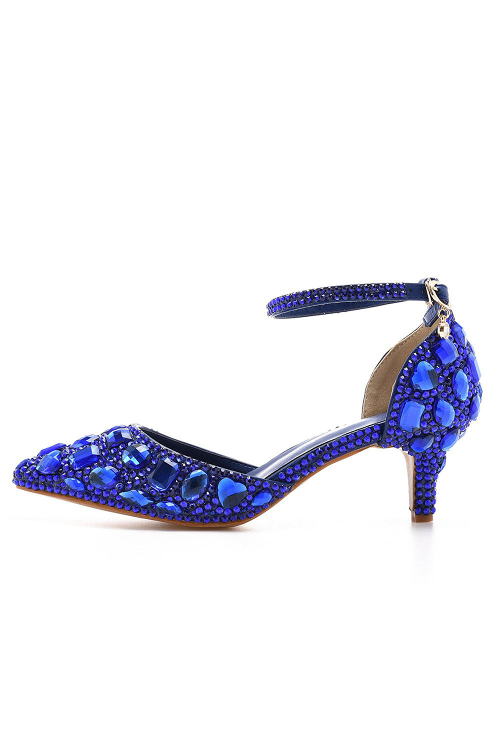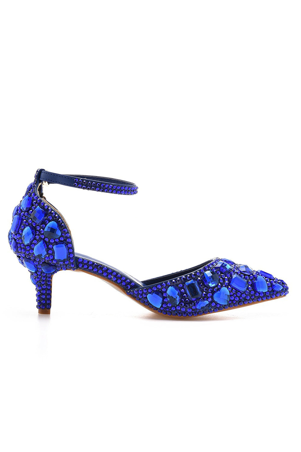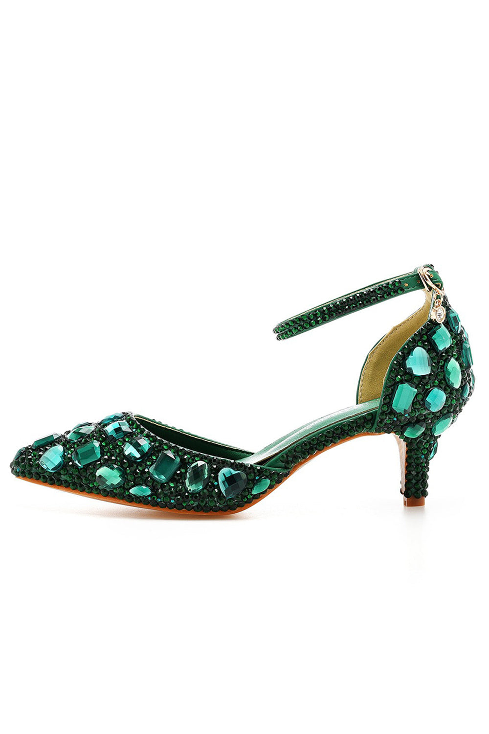Pointed Toe Crystal Diamond Ankle Strap Kitten Heels