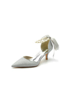 Pointed Toe Glitter Crystal Ribbons Faux Pearl Pumps