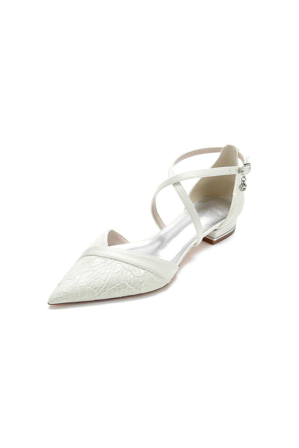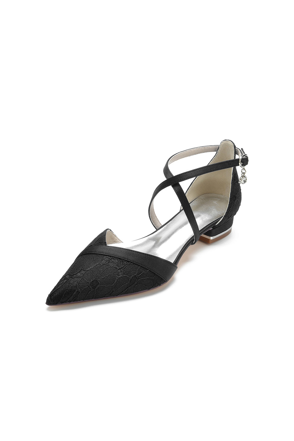 Pointed Toe Lace Ankle Strap Kitten Heels