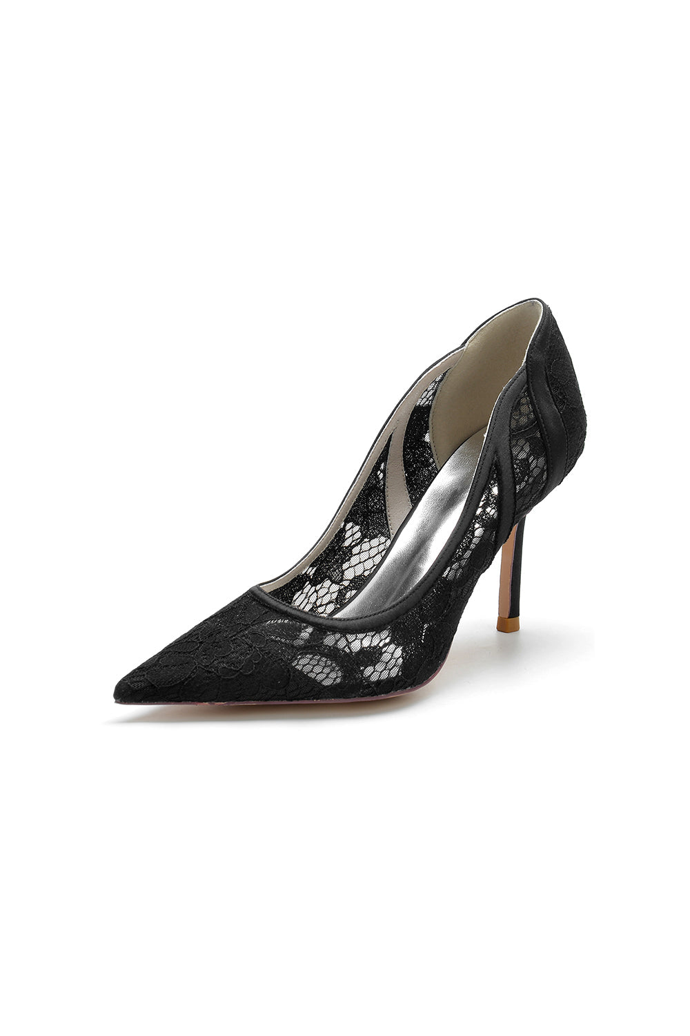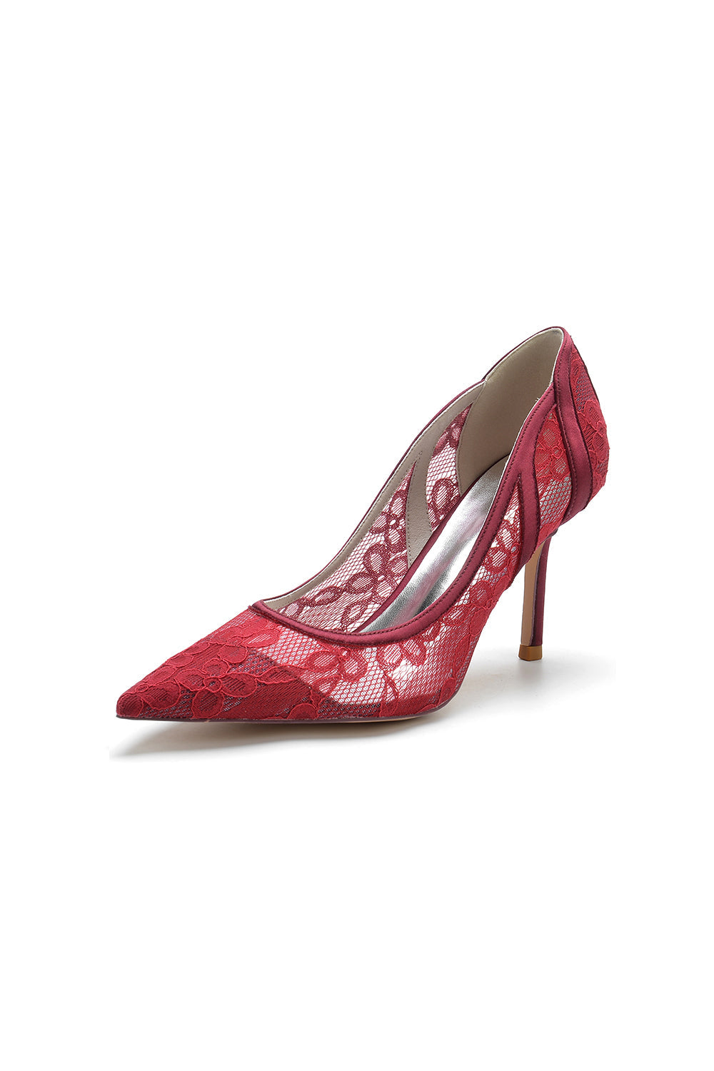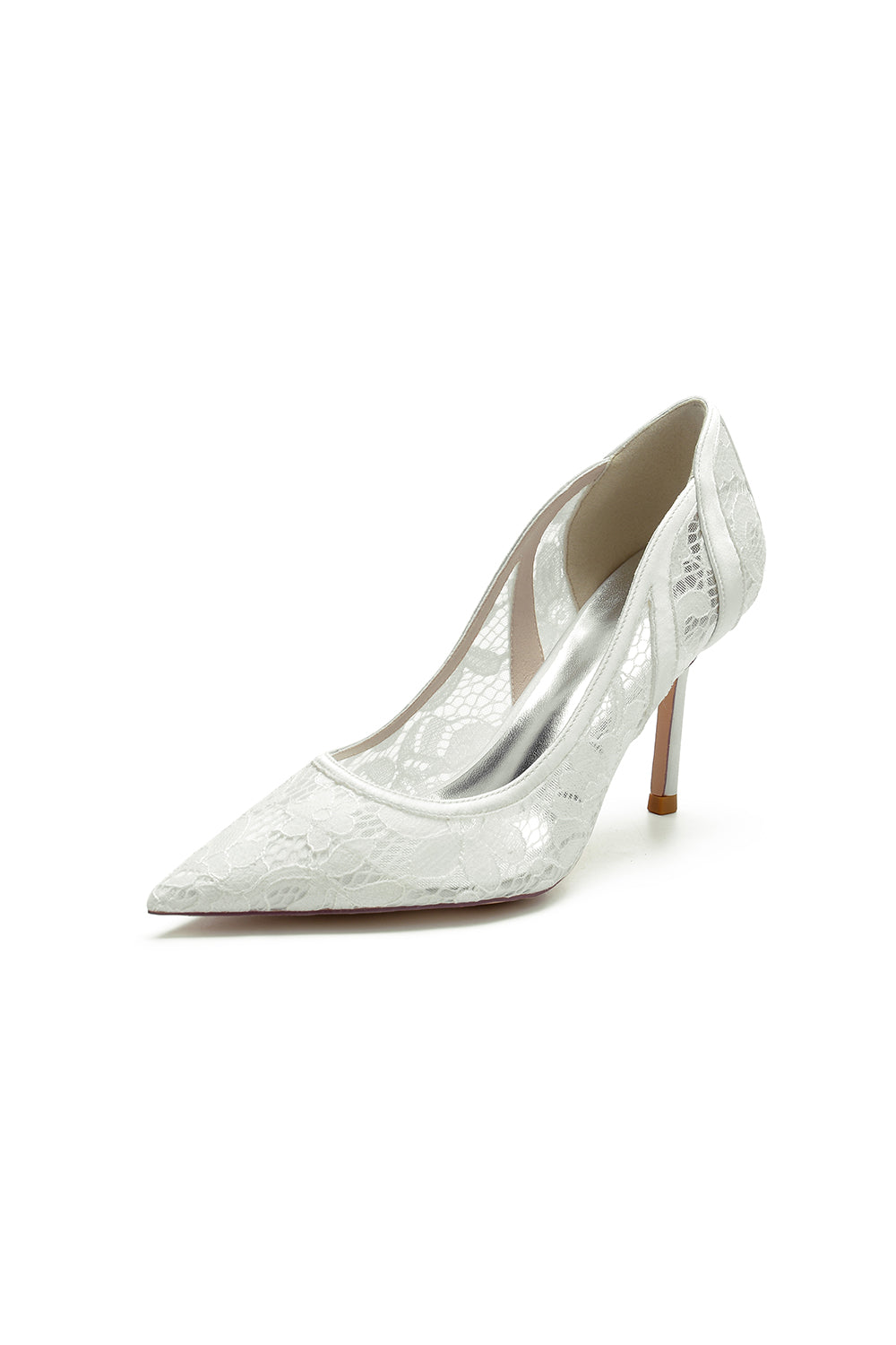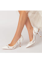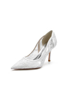 Pointed Toe Bridal Heels with Lace Appliques
