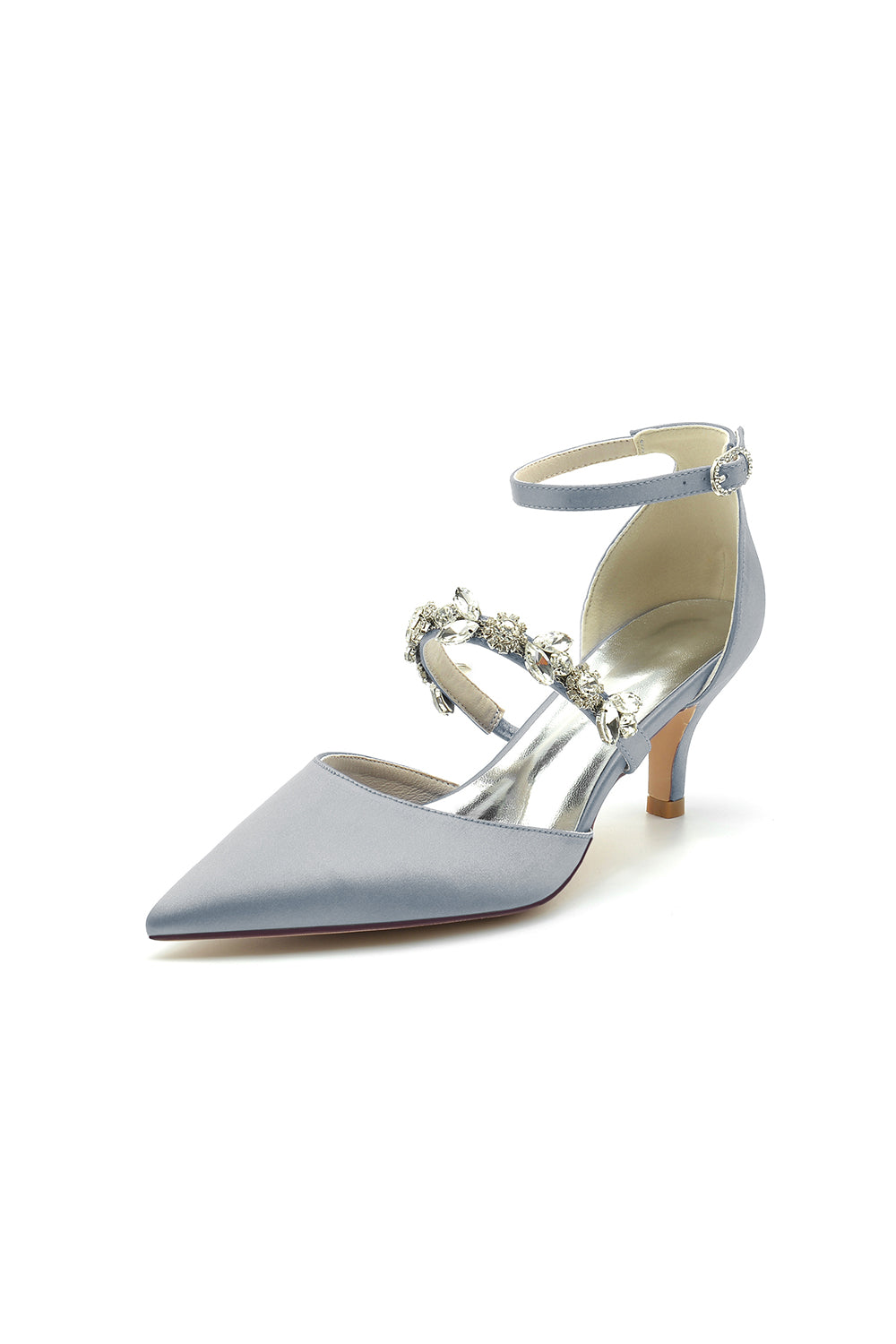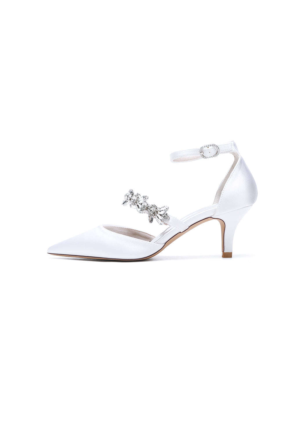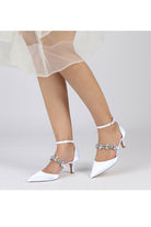 Pointed Toe Rhinestone Ankle Straps High Heels