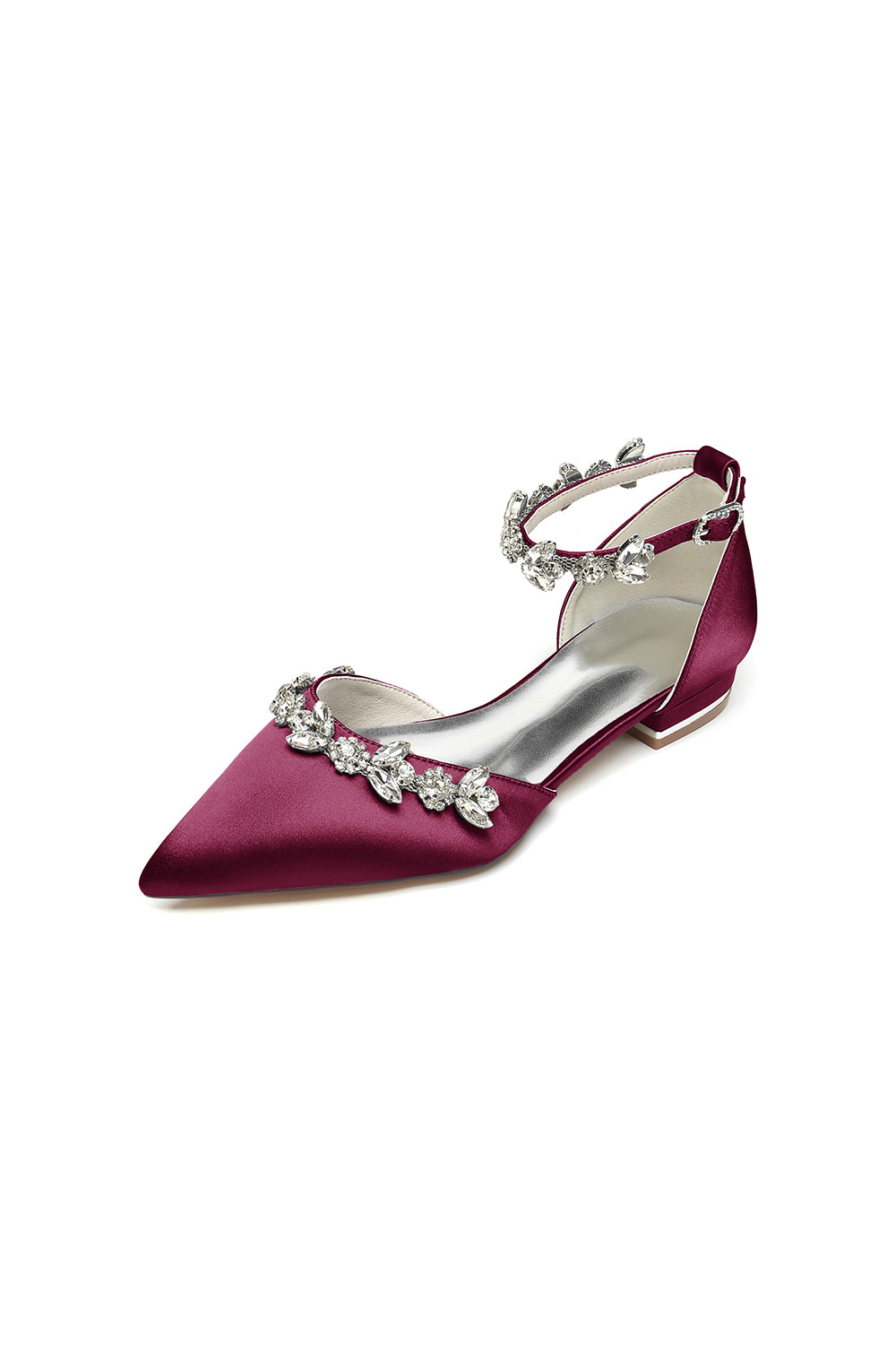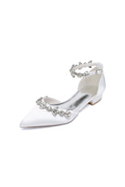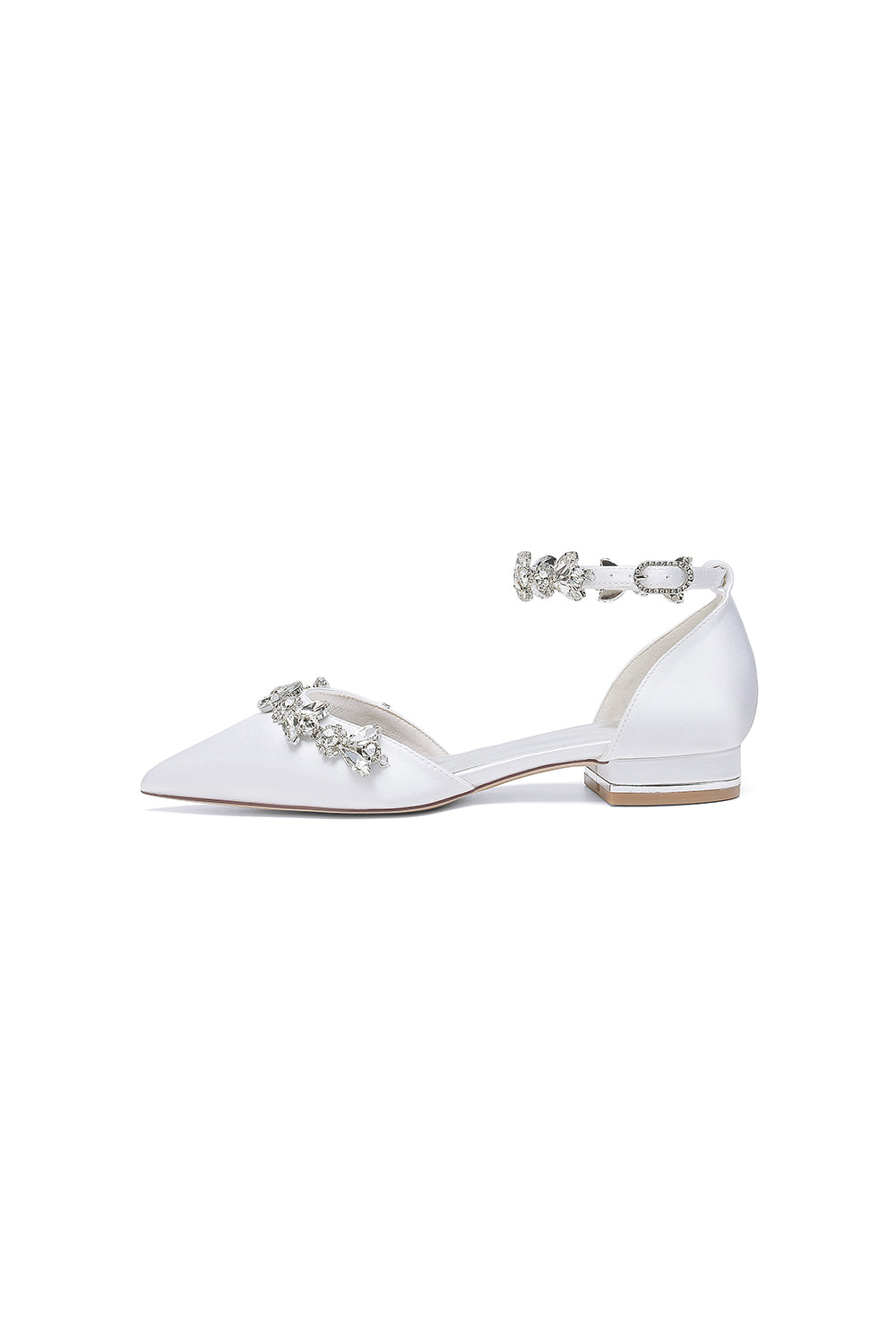 Pointed Toe Rhinestone Beaded Ankle Strap Kitten Heels