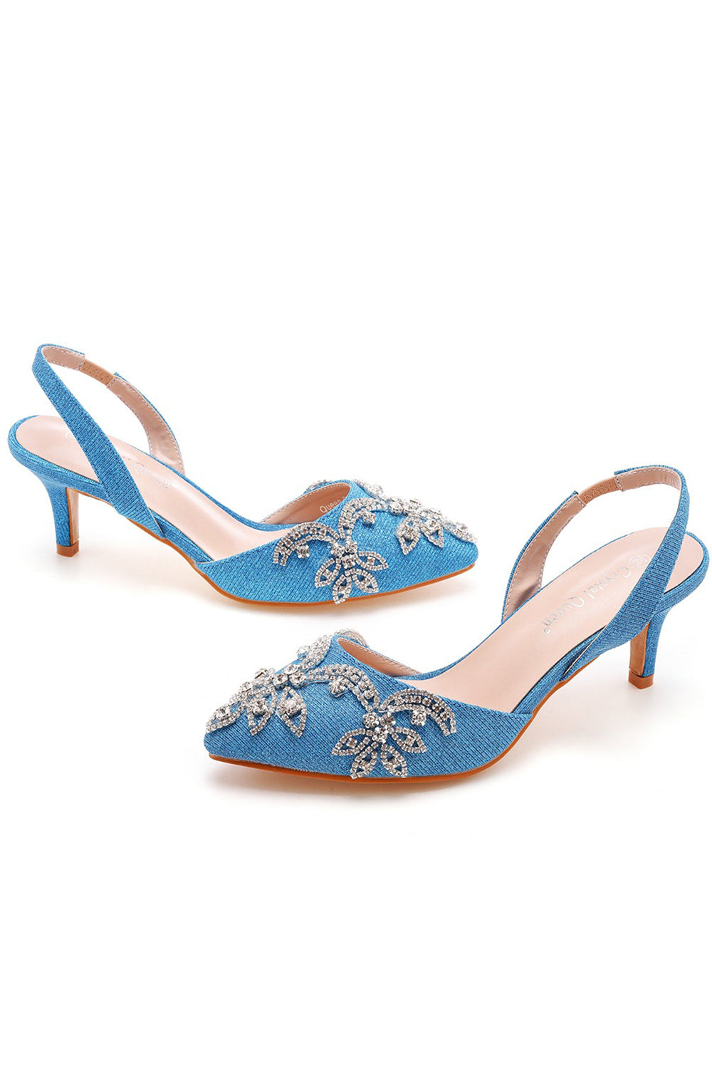 Pointed Toe rhinestone Glitter Slingback Pumps