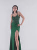 Rafenild | Green V Neck Beading Satin Long Slit Prom Dresses